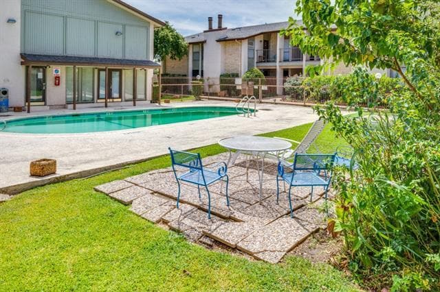 Karina GonzalezFall in Love with Comfort & Convenience Adorable first-floor Condo in Las Colonitas Condos.Welcome to your charming retreat in the north of Dallas! This beautifully first-floor condo blends modern comfort with a prime location, making it an ideal place to call home. Step inside and you ll be greeted by the nice-looking vinyl flooring and ceramic tile that flow seamlessly through the open living space. The oversized main room is enhanced by a convenient ceiling fan with lighting and a spacious walk-in closet for all your storage needs.The kitchen is a delight with a clean refrigerator, stove, and vent hood perfect for preparing your favorite meals. Enjoy peaceful mornings or relaxing evenings on your covered patio while taking in the tranquil surroundings.This well-maintained community offers a refreshing in-ground pool, 1 covered reserved parking plus, additional open spaces, and lush grounds. Just one block from I-635 and the Dallas North Tollway, giving you easy access to shopping, dining, entertainment and parks.