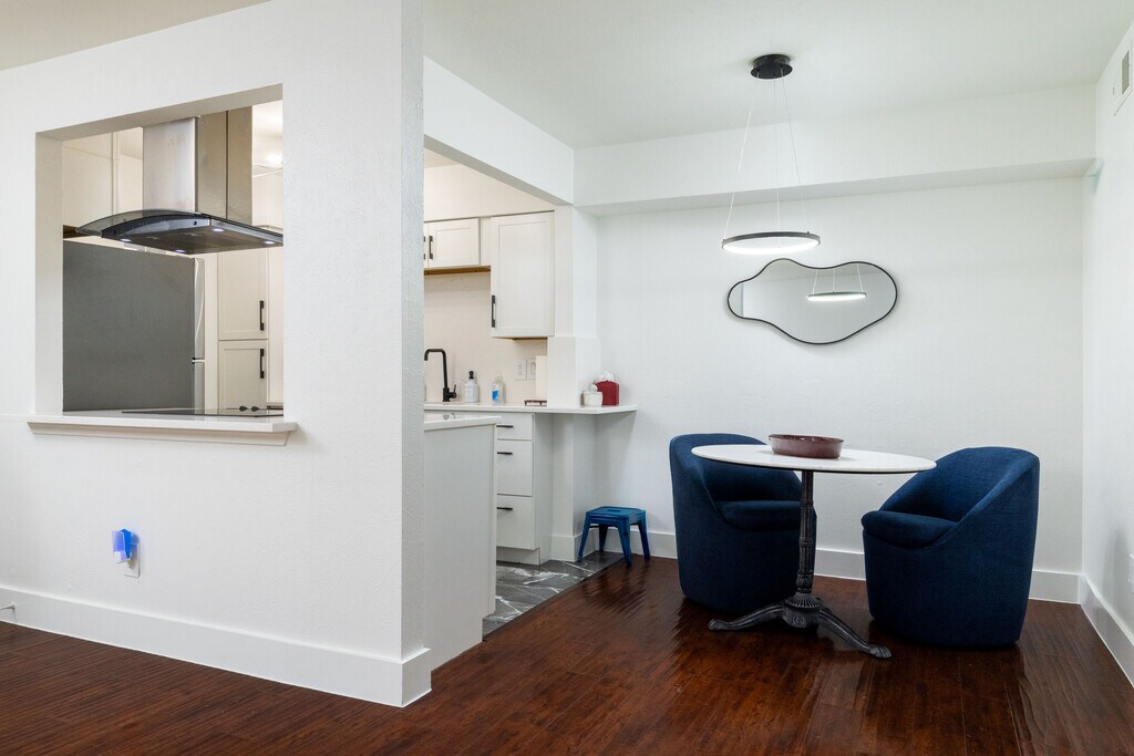 Welcome to your Dallas getaway! This renovated 1 bedroom, 1 bathroom condo offers comfort and convenience in Far North Dallas / Preston Hollow Area close to downtown Dallas, the Galleria, and Addison with easy access to the airport. Located on the first floor with easy access — no stairs!