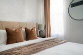 This elegantly furnished 2-bedroom apartment offers a blend of comfort and style, featuring a queen-size bed in the bedrooms and a full-size sofa in the living room for ultimate relaxation. An air mattress is also on hand for extra sleeping options. Located in the Upper East Side, this apartment is perfect for those looking to feel at home in one of New York City's most desirable neighborhoods. The expansive kitchen comes fully stocked with all essential appliances and utensils, making it easy to prepare delectable meals during your stay. The dining space is roomy, offering ample seating for you and your guests. Hardwood flooring graces the entire apartment, lending an air of sophistication and warmth. For your entertainment and connectivity needs, a flat-screen TV and Wi-Fi are readily available. Complete with provided linens, such as sheets and towels, this apartment has everything you need for a delightful stay. The Upper East Side is known for its upscale residential buildings, high-end shopping, and iconic cultural institutions. The area is home to renowned museums such as the Metropolitan Museum of Art, the Solomon R. Guggenheim Museum, and the Neue Galerie New York. Shoppers will delight in the designer boutiques and luxury brands lining Madison Avenue and Fifth Avenue. Foodies will enjoy the diverse culinary offerings, with a variety of restaurants and cafes serving everything from classic New York bagels to Michelin-starred cuisine. The neighborhood also boasts numerous parks and green spaces, including Central Park, which is just a short walk away from the apartment. New York City's heating season is until the end of May. Beginning around mid-April, window air conditioning will be installed in the apartment. A request for earlier installation can be made. [SI]