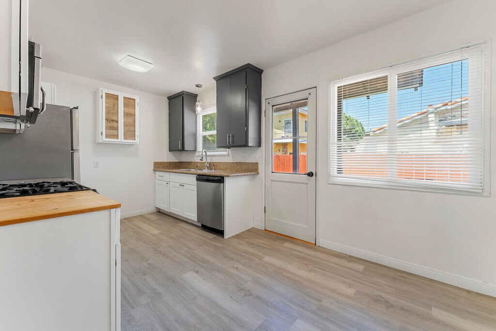Newly updated 3 bedroom 1 bath + bonus space bungalow in a highly desirable Del Rey neighborhood centrally located between Venice, Marina Del Rey, Culver City and Playa Vista minutes away from the Silicon Beach, Erewhon, Whole Foods and many trendy restaurants and entertainment. Walking distance to Ocean Charter and Short Avenue schools. This charming home is featuring newly refinished real hardwood floors and dual pane windows throughout. Kitchen comes with plenty of cabinet space and all stainless steel appliances - stove, microwave, fridge, and a dishwasher. There is a dining area is next to the kitchen. Three cozy bedrooms down the hall and an updated spacious bathroom with shower over tub and storage cabinet. Large linen closet in the back of the hallway and a bookshelf for more storage. The garage is converted into extra living space and can be used as a gym, office, ore TV room. Stacked washer and dryer in the garage. There is a window A/C unit. The home is fully gated with driveway parking for 2 cars. Enjoy spacious beautifully landscaped front and back yard with lots of grass area and sparkling jacuzzi in the back. Spacious shed for storage is available in the back yard. Jacuzzi maintenance is $80/mth. Please contact Anastasia to schedule a showing. 12 months lease. Tenants pay for utilities - water, sewer, trash, gas, electricity, internet/cable and $80/mo for Jacuzzi maintenance. Gardener included. Dog deposit $500 per pet and dog rent $50/mo. NO cats, sorry.