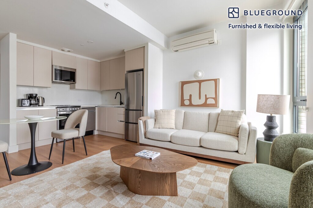 Feel at home wherever you choose to live with Blueground. You’ll love this spacious Williamsburg furnished one bedroom apartment with its modern decor, fully equipped kitchen, and cheery living room. Ideally located, you’re close to all the best that New York has to offer! (ID #NYC2226) The advertised rate of $5,033/month is the lowest available price, based on a 1 month(s) and 2 day(s) stay with a move-in date of February 11, 2026. If you’re looking for a 1-year stay, the rate is $5,748/month. Rates vary depending on the duration of stay, season, and other parameters. For exact pricing and additional pricing components, please visit our website and enter your desired move-in and move-out dates. The rate is applicable when billed upfront; it can be higher if billed in multiple payments. Brokers are welcome to reach out. Were you looking for an unfurnished lease? Try Blueground instead and upgrade from unfurnished to furnished living: - Furnished at rates comparable to unfurnished - No setup or furniture costs - save thousands - Move-in ready - save time, just bring your suitcase Designed with you in mind Thoughtfully designed with bespoke finishes, modern furnishings, and a fully equipped kitchen, you’ll enjoy that “I’m home” feeling with this Blueground apartment. Whether you’re lounging in your stylish living room streaming the latest and greatest entertainment on the smart TV or premium wireless speaker, or getting some well-earned rest on the superior quality mattress with fully stocked linens, you’ll fall in love with everything this Williamsburg apartment has to offer. This apartment also offers in-apartment laundry. Sleeping arrangements Queen Bed, 63in/160cm Amenities Building amenities unique to this one bedroom apartment include an on-site: - Dryer - Elevator - Washing machine - Lounge - Pets allowed - Rooftop BBQ Arrival and ongoing support The entire apartment is yours to enjoy! Throughout your stay, you’ll have access to our Client Experience team through the Blueground App. You can schedule additional cleanings, submit maintenance requests, and view our neighborhood recommendations with just a few taps. We’ll share all details upon confirmation of your stay. Ideally Located This furnished apartment is situated in Williamsburg, known as Brooklyn’s creative outlet. Residents vary from artists and young professionals working in the media or entertainment industries to families. Williamsburg Bridge is great for long strolls, running or biking. Over the weekend, visit Bedford Avenue, which is constantly buzzing with trendy boutiques, fine dining, outdoor day parties and a thriving music scene. East River State Park also offers a great sunset over the Manhattan skyline. Embarking on the L train, you can be in the heart of Manhattan in just a few minutes. Also the M and J trains make it easy to get to other downtown neighborhoods. Other things to note Building amenities may have an extra cost. This Blueground apartment has flexible lease options, allowing you to book it for one month, a year, or more. Pets are welcome, though weight limits and breed restrictions apply and may incur fees. Brokes CYOF. We take great pride in ensuring every photo displayed is shot in our own units with our actual furnishings. That said, we regularly refresh our decor and furniture arrangement, which may differ from what’s pictured. [SI]