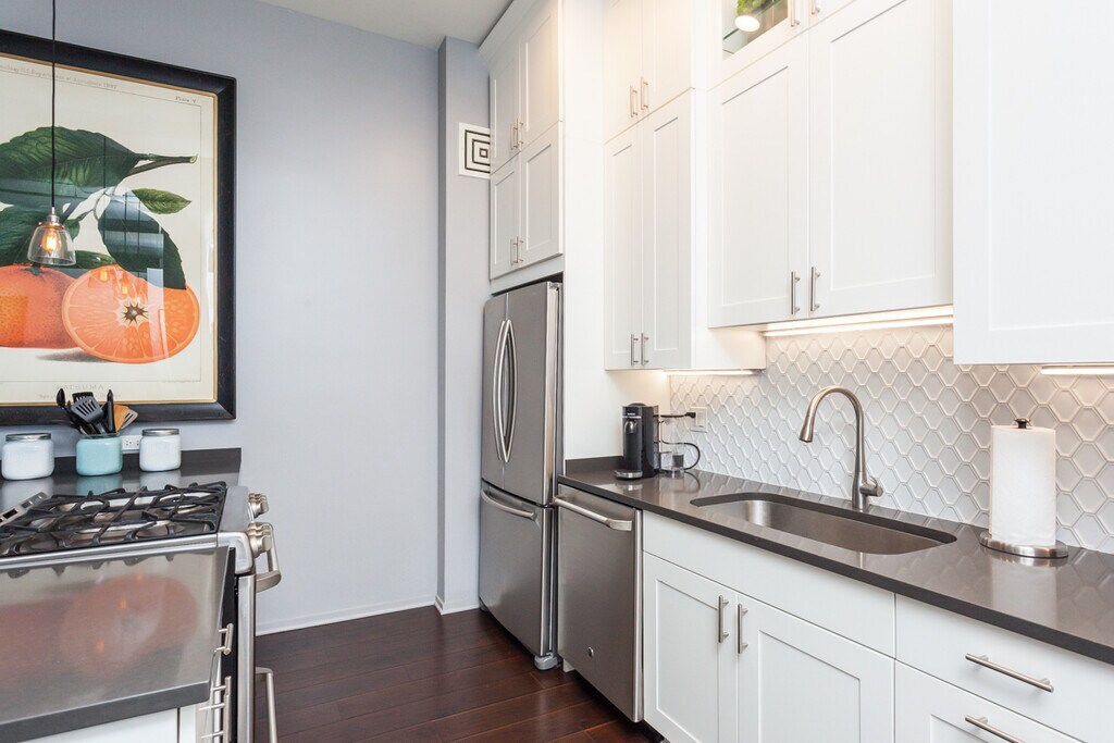 Available Now: Come see this gorgeous 1-bedroom/1-bath open-concept loft unit located in the West Loop area! This large condo has hardwood floors throughout, a renovated kitchen with lots of cabinet space, SS appliances with a gas range oven, dishwasher, and a large breakfast bar with grey quartz countertops. The bedroom can easily accommodate a king sized bed as needed, along with some space for a home office or dresser, and a sizeable walk-in closet. Bathroom is accessible from both the bedroom and living space and is beautifully renovated with a standing shower, modern finishes, and recessed lighting. Unit comes equipped with an in-unit washer and dryer and has central heating and air. Storage locker, cable, and internet are included in the rent, and tenant only pays for gas and electric. Parking options are available for rent in the building from other owners/tenants. 1 pet is allowed, cat or dog, with additional fee. The full-service building has 24-hour door staff, a fitness room, a huge common sun terrace, and a bike room. Location is ideal for commuters and if you love good food with tons of restaurants and access to multiple shopping areas. Photos taken from previous tenant. Property Management firm requires mandatory Resident Benefits Package for an additional $40.00 per month; includes renters insurance, positive credit reporting for on-time rental payments, identity fraud protection, and more. Stephen Suominen Ref # 12 520178 Compass Listing Courtsey of Fulton Grace