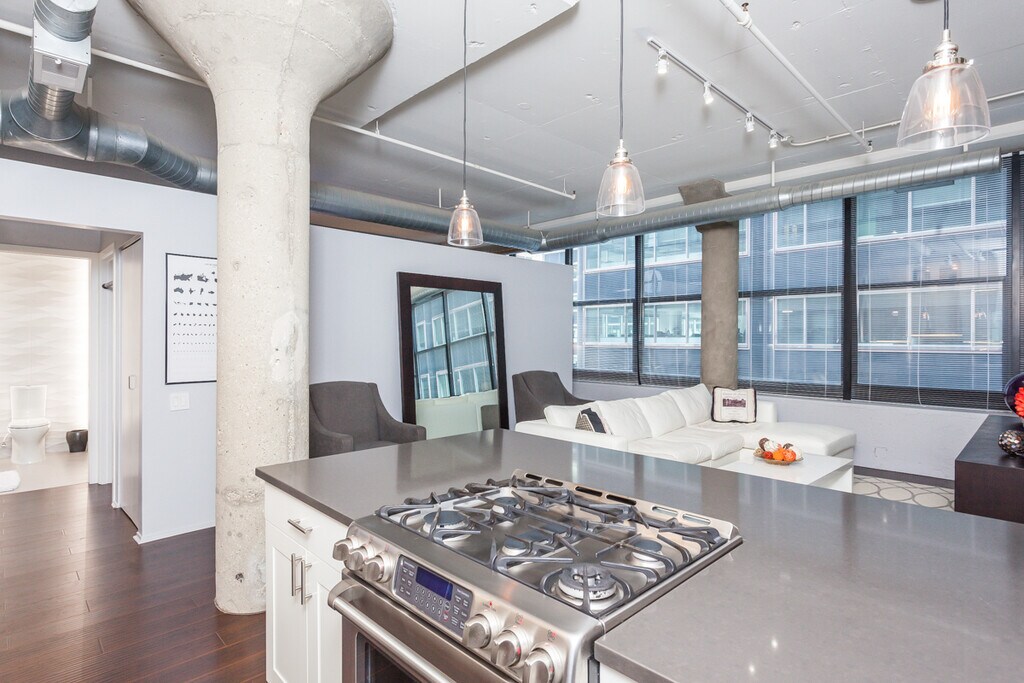 Come see this gorgeous 1-bedroom/1-bath open-concept loft unit located in the West Loop area! This large condo has hardwood floors throughout, a renovated kitchen with lots of cabinet space, SS appliances with a gas range oven, dishwasher, and a large breakfast bar with grey quartz countertops. The bedroom can easily accommodate a king sized bed as needed, along with some space for a home office or dresser, and a sizeable walk-in closet. Bathroom is accessible from both the bedroom and living space and is beautifully renovated with a standing shower, modern finishes, and recessed lighting. Unit comes equipped with an in-unit washer and dryer and has central heating and air. Storage locker, cable, and internet are included in the rent, and tenant only pays for gas and electric. Parking options are available for rent in the building from other owners/tenants. 1 pet is allowed, cat or dog, with additional fee. The full-service building has 24-hour door staff, a fitness room, a huge common sun terrace, and a bike room. Location is ideal for commuters and if you love good food with tons of restaurants and access to multiple shopping areas. Photos taken from previous tenant.