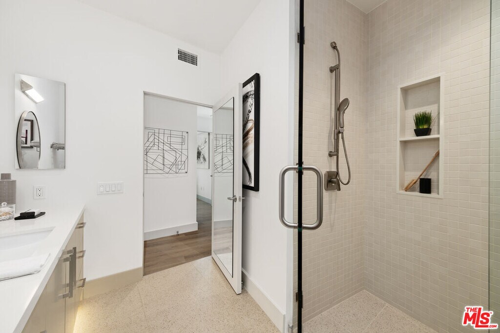 This spacious luxury unit is available with a 12-month lease term. The FLORENCE floor plan features keyless entry and offers two bedrooms and two bathrooms with private dual suite configuration and luxury bathrooms that have an oversized walk-in shower or tub. The open concept designer kitchen and dining area flows into the vaulted ceiling living room with built-in glass covered credenza. The kitchen is fully equipped with high-end appliances. An exterior balcony complements the floor plan and provides scenic views of The Getty. Villa Bel Air offers residents an array of modern amenities to level-up your lifestyle including a gym with top-tier equipment, central courtyard with fireplace, and a work lounge with state-of-the-art ROOM pods for conferencing and private meetings. Unwind by the koi pond in the lushly landscaped garden, bask in the sunshine at the outdoor penthouse lounge, or hit the grill area for an al fresco culinary adventure. MLS# 26648791