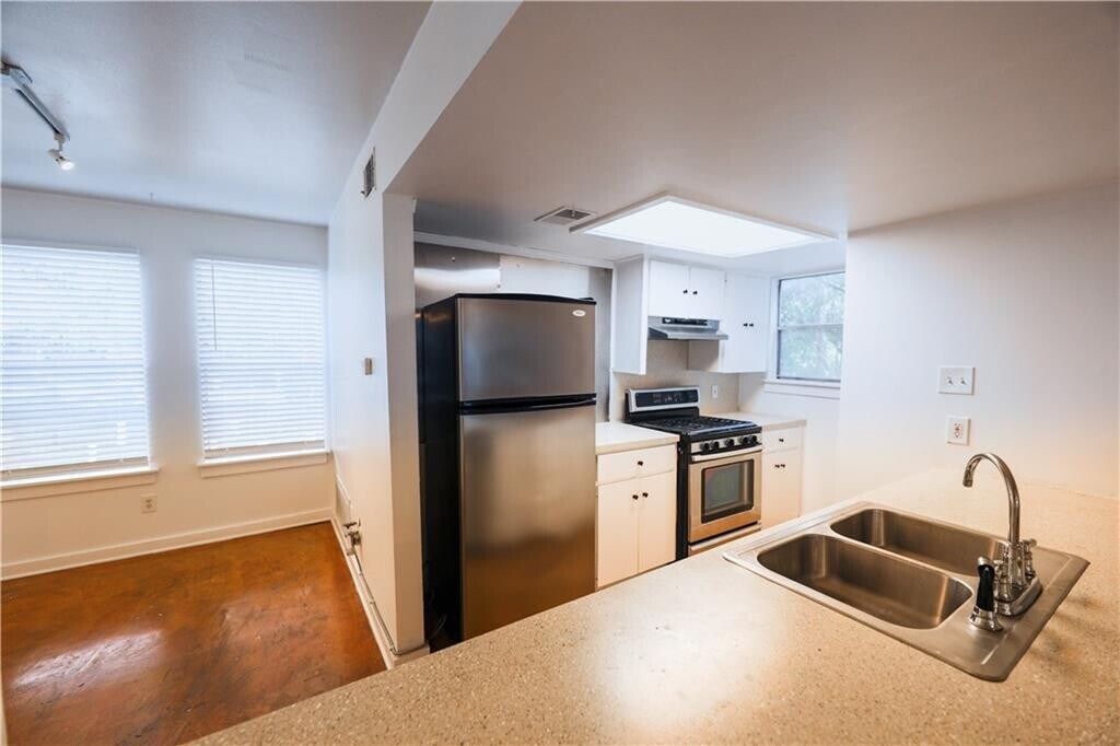 Acogedor y encantador, el lugar tranquilo perfecto en Clarkesville. Disponible para mudarse de inmediato, esta propiedad exclusiva de 2/1 irá rápido. Unidad inferior en dúplex exclusivo con electrodomésticos de acero inoxidable, suelos de hormigón teñido. A solo unas cuadras de tantos lugares excelentes para comer y comprar... Whole Foods Market, West Elm, Anthropologie, Free People, Z Tejas, Clark's Oyster Bar, Amy's Ice Cream y mucho más. Por no hablar de los senderos para caminar y andar en bicicleta del lago Lady Bird. Hay un área de jardín con vallas. También está disponible la unidad C en el piso de arriba, con el mismo plano y acabados.