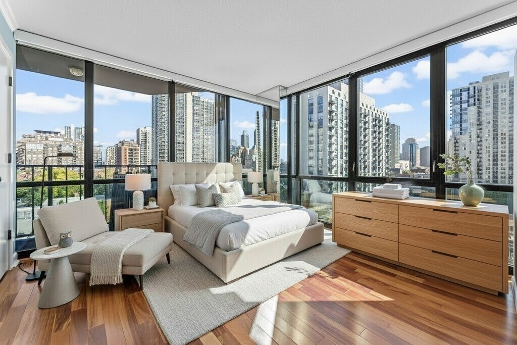 Experience elevated city living in this high-floor 2 bed / 2 bathroom Old Town apartment with breathtaking east and south views of Lake Michigan and the Chicago skyline. Floor-to-ceiling windows fill the space with natural sunlight throughout the home while the private balcony showcases the breathtaking views. Motorized shades provide effortless comfort and privacy at the touch of a button. Inside,the open-concept layout is designed for both style and function. Hardwood flooring runs throughout,anchored by a cozy fireplace. The spacious kitchen features a breakfast bar,granite countertops,stainless steel appliances,and ample storage. Both bedrooms offer private ENSUITE BATHROOMS with heated floors,and in-unit laundry ensures daily convenience. Building amenities include 24-hour door staff,a rooftop patio with wrap around views,and an attached garage with one parking space conveniently located next to the elevator. Located in the heart of Old Town,you'll be just steps from a wide range of boutique shopping and fitness classes,acclaimed dining,lively nightlife,and grocery stores,with multiple public transit options nearby for easy access to the entire city. A rare blend of luxury finishes,modern conveniences,and unbeatable location-this residence is the perfect place to call home. MLS# MRD12485598 Based on information submitted to the MLS GRID as of [see last changed date above]. All data is obtained from various sources and may not have been verified by broker or MLS GRID. Supplied Open House Information is subject to change without notice. All information should be independently reviewed and verified for accuracy. Properties may or may not be listed by the office/agent presenting the information. Some IDX listings have been excluded from this website. Prices displayed on all Sold listings are the Last Known Listing Price and may not be the actual selling price.