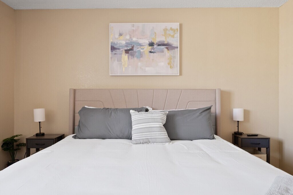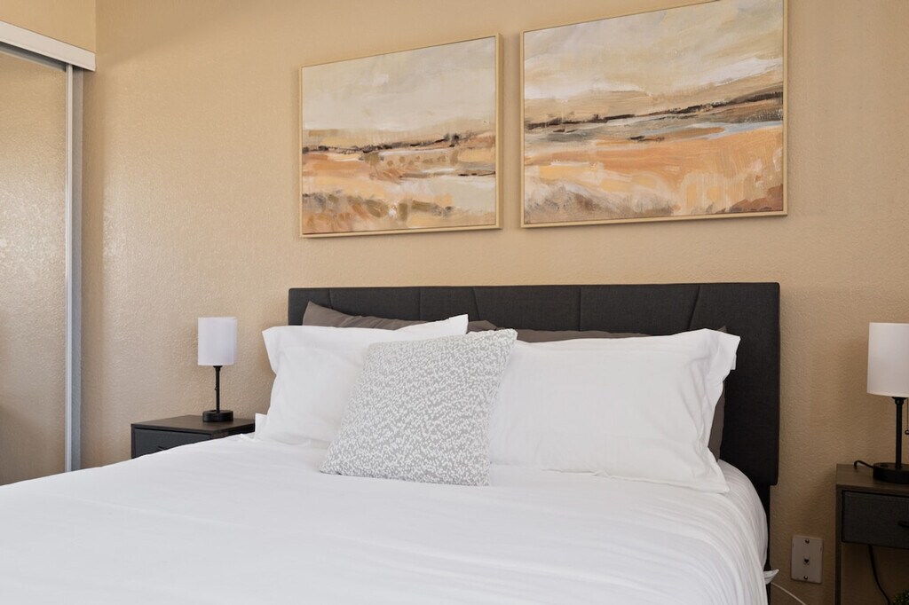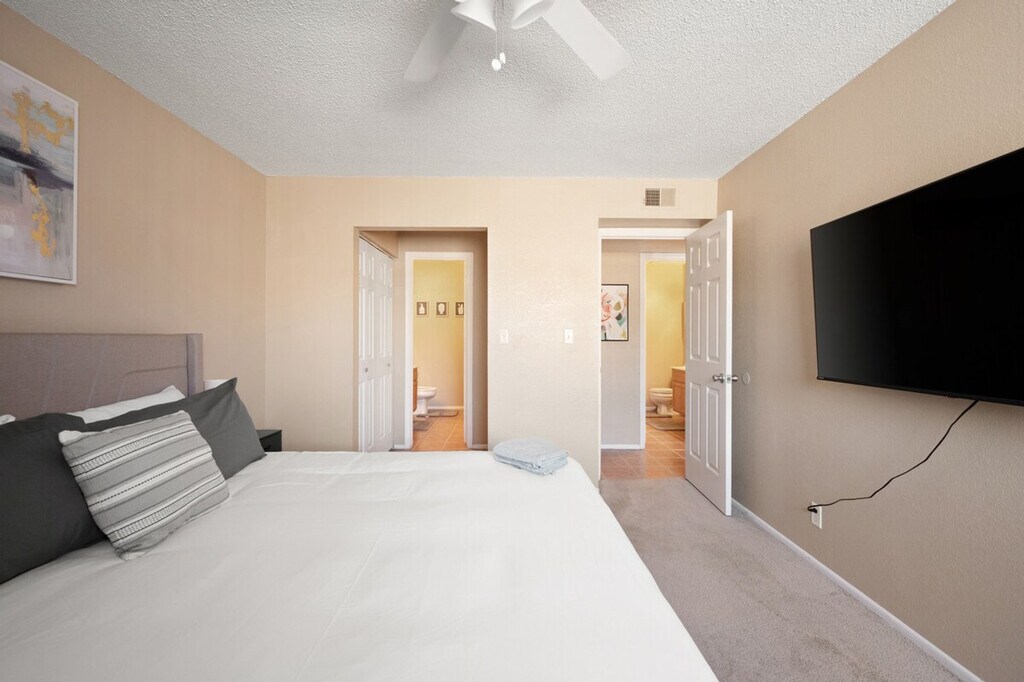 Feel at home in this fully furnished 2-bedroom, 1.5-bath apartment. This apartment features a king-size bed, a queen-size bed, a full kitchen, central AC, a washer and dryer in the unit, fast Wi-Fi, a patio, and 3 smart TVs. The kitchen has a full-size fridge, 4-burner stove, microwave, oven, dishwasher, air fryer, coffee maker, blender, toaster, and water kettle. You'll have access via smart lock to a private entrance and private patio. This gated community offers a community pool and designated parking. Pets are welcome with a non-refundable pet fee of $150 per pet. This apartment is conveniently located near various attractions and facilities. Mesa Arts Center is 1.7 miles away, and the Arizona Museum of Natural History is 2 miles away. The i.d.e.a. Museum is 2.7 miles away, and Park of Canals is 4.7 miles away. Tempe Marketplace is 8.5 miles away, Papago Park is 11 miles away, and the Phoenix Zoo is 14.2 miles away. The Desert Botanical Garden and Old Town Scottsdale are both 14.7 miles away, and Usery Mountain Regional Park is 18.2 miles away. State Farm Stadium is 35.3 miles away. ASU - Tempe Campus is 5 miles away, and Mesa Community College is 8.9 miles away. Chandler Airport Center is 9.2 miles away, and Business Park MESA RIDGE is 11.3 miles away. Intel - Chandler is 12.3 miles away, Phoenix Sky Harbor International Airport is 15.5 miles away, and Phoenix-Mesa Gateway Airport is 18.9 miles away. KPC Promise Hospital of Phoenix is 2.2 miles away, and Banner Desert Medical Center is 3.3 miles away. Banner Baywood Medical Center is 10.8 miles away, and Dignity Health - Arizona General Hospital is 14.2 miles away. This apartment is available for short-term rentals at $3,500 per month for 3 months or $1,850 per month for 6 months or longer. Wi-Fi and electric are not included for long-term rentals. Rate from December to March includes everything and up to $100/month on electric. Includes a desk, chair, shredder, and printer. [SI]