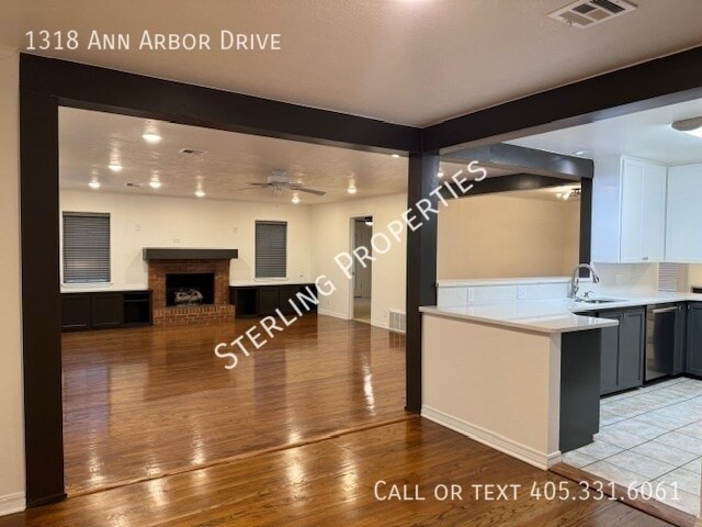 1950's charm on a large lot for Abundant space inside and outside this Central Norman Updated Home, minutes drive to the west side of OU's campus off Berry Rd between Main & Boyd Streets. 3 bedrooms with 3 full bathrooms, multiple living and dining room areas making a very versatile layout with an amazing 300sqft screened in sun room perfect for entertaining. Updated kitchen has quartz counters, stainless dishwasher, disposal and large pantry. Bring your own fridge, washer and dryer. Hard wood floors throughout the main living areas with carpet in the 3 bedrooms complete with ceiling fans. Extra width on the driveway for parking, sprinkler system, back up generator and above ground storm shelter in the garage are a few of the perks for peace of mind. The backyard is fully fenced, pet friendly with additional refundable pet deposit, with a storage shed for your convenience. 2 Car Garage 3 Bathrooms 3 Bedrooms Central Heat & Air Electric Stove Gas Log Fire Place Storm Shelter Washer & Dryer Hook Ups