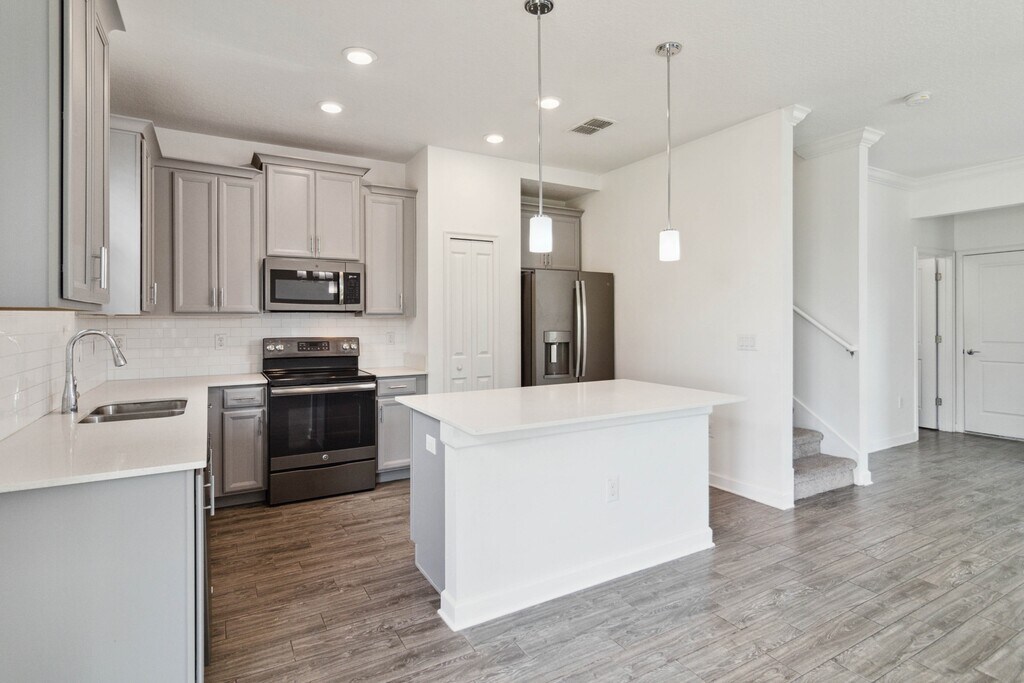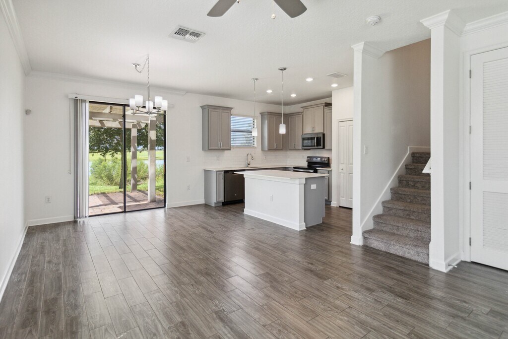 Available December 1! $0 application fee for pre-approved applicants. Step into comfort and style with this beautifully upgraded townhouse in the highly desirable Vistas at ChampionsGate. Designed with one of the most sought-after layouts in the community,this spacious home features an open living area,three generously sized bedrooms,and a rare loft that functions perfectly as an additional living space,office,or media room. The modern kitchen offers abundant cabinetry,stainless steel appliances,pendant lighting,and a tucked-away laundry cabinet for added convenience. Elegant touches such as wood-plank tile flooring throughout the entire first floor and crown molding elevate the home’s warm and welcoming feel. Outside,relax under the extended pergola or enjoy peaceful community views from the screened lanai—both ideal for morning coffee or evening unwinding. Residents also benefit from a covered entry,upgraded fan package,and a prime location just minutes from world-class dining,shopping,golf,and major attractions including Walt Disney World and the Omni Resort. Experience maintenance-free living with HOA-managed amenities in one of ChampionsGate’s most convenient neighborhoods. HOA approval required. INQUIRE NOW! MLS# S5138533