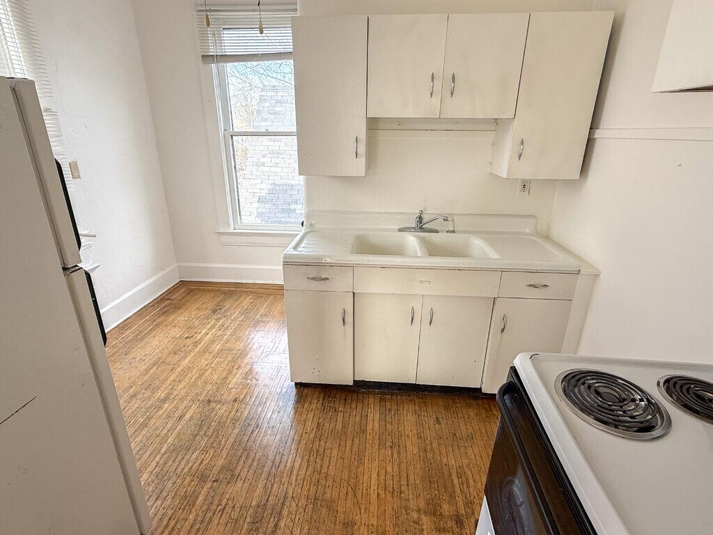 This is a one-bedroom apartment on the 2nd floor with huge windows and lots of charm. The hardwood floors and tall ceilings give it a wonderful vintage flair. Gorgeous old Victorian home that has been converted into 4 apartment buildings. Super close to everything in downtown New Albany. It's a neat vibe.