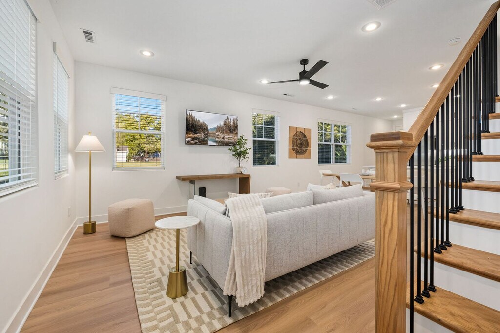 Feel at home in this newly built, modern home in Fayetteville. This 3-bedroom, 2.5-bath home comfortably accommodates up to 6 guests. The bright, open floor plan features an open-concept living/dining area with plush seating, a large Smart TV, and a dining table for 6. The fully stocked kitchen includes new appliances and amenities. A washer and dryer are available for guest use. Enjoy the side yard with a grill and seating. This property is pet-friendly with a fee of $90 per dog, with a maximum of 3 dogs allowed. Located near the college campus, this home is just 0.5 miles from Baum Walker Stadium, 1 mile from the University of Arkansas campus, and 1.5 miles from downtown Fayetteville. Enjoy easy access to the Razorback Greenway, with the Fayetteville Transverse trail just one block away and the Frisco trail 0.5 miles away. Walker Park, with basketball courts, a splashpad, and playgrounds, is also just a 0.5-mile walk away. You'll find amazing local restaurants, shops, and popular bike trails nearby, offering something for everyone. Check-in is any time after 3:00 PM. Parties or guest actions that result in disturbances, property damage, extensive extra cleaning, or smoking indoors will incur a fine of $1,000. Dogs discovered at the property without prior notice or cats discovered at the property will incur a fine of $400. Unauthorized checkout delays will incur a fine of $100 per hour. If you smoke in the home, you will be fined $1,000 plus the cost of any smoke remediation necessary. [SI]