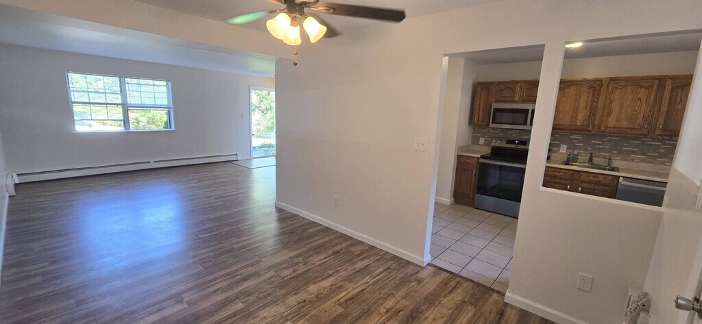 Jodi GillespieTown of Newburgh, Wallkill Schools. Spacious and freshly painted 3 bedroom, 1 bath apartment with two floors main living area on the first floor, bedrooms and bath on the second. Enjoy laminate flooring, some new windows, and an enclosed, fenced backyard with a private patio. The kitchen features a new stainless steel electric stove, new dishwasher, new microwave, and a refrigerator, plus a washer/dryer for your convenience. Utilities paid by tenant include electric, propane heat and hot water, cable, internet, and telephone; landlord covers garbage removal, snow removal, and lawn care. Additional features include a paved driveway with two parking spots, a high-efficiency boiler for heat & hot water, 2X6 construction for extra insulation. Combined income for requirement is three times the annual rent, good credit, and completion of a RentSpree application with credit report, background check, and two months proof of income & W-2. Renters insurance will be required. All adults living in home must submit the same documents, be listed on the lease and meet landlords criteria. Pets MAY be considered on an individual basis and for additional monthly rent.