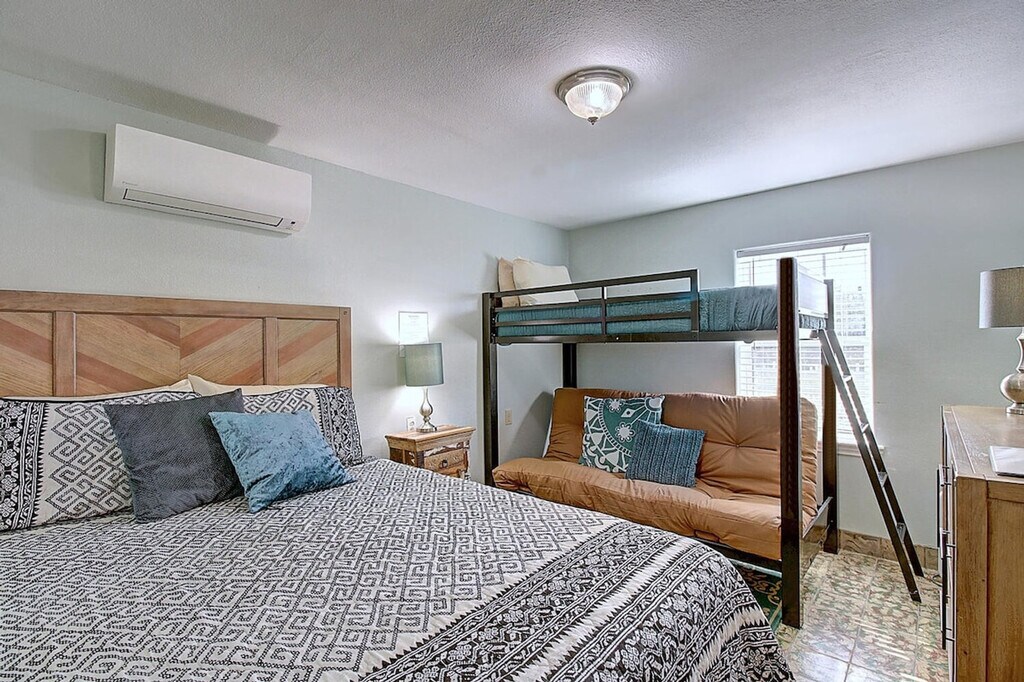 The advertised rate of $2,465/month is the lowest available price, based on a 1 month(s) stay with a move-in date of April 22, 2026. Rates vary depending on the duration of stay, season, and other parameters. For exact pricing and additional pricing components, please visit our website and enter your desired move-in and move-out dates. The rate is applicable when billed upfront; it can be higher if billed in multiple payments. Welcome to Kahuna Cottage, where contemporary conveniences meet relaxed beach vibes. This inviting and centrally located property features a fenced yard and private backyard, perfect for enjoying the coastal atmosphere. Accommodating up to four guests, this home is within walking distance to bars, restaurants, and a grocery store, ensuring you feel at home in this vibrant neighborhood. Relax and unwind in the spacious, private backyard, a peaceful retreat for morning coffee or evening barbecues. The bedroom offers a queen bed and a twin over full bunk bed, while flat-screen TVs with cable service are available in all rooms for your entertainment. Wireless internet access is provided for your convenience, although laundry facilities are not included. Up to two dogs are allowed for a fee of $125 per stay, with the request that dogs are crate trained and cleaned up after. Parking is available in the driveway for a maximum of two cars. Located just a short drive from Port Aransas Beach, Mustang Island State Park, and Roberts Point Park, this property offers easy access to miles of sandy shores, scenic parks, and wildlife viewing opportunities. Nearby attractions also include the Leonabelle Turnbull Birding Center and Port Aransas Nature Preserve, perfect for nature enthusiasts. Dining options abound with local favorites like Irie’s Island Food and Trout Street Bar & Grill just minutes away. Check-in is at 4pm and check-out is at 10am. No parties are allowed, and violations may result in immediate termination of the stay. Smoking and vaping are prohibited inside and outside the property, with a $500 charge if evidence of smoking is found. Please be respectful of neighbors, as no loud music or parties are allowed outside between 10 PM and 7 AM. A starter set of essentials is provided, but guests should bring extra supplies for longer stays. A laptop computer is not included. [SI]