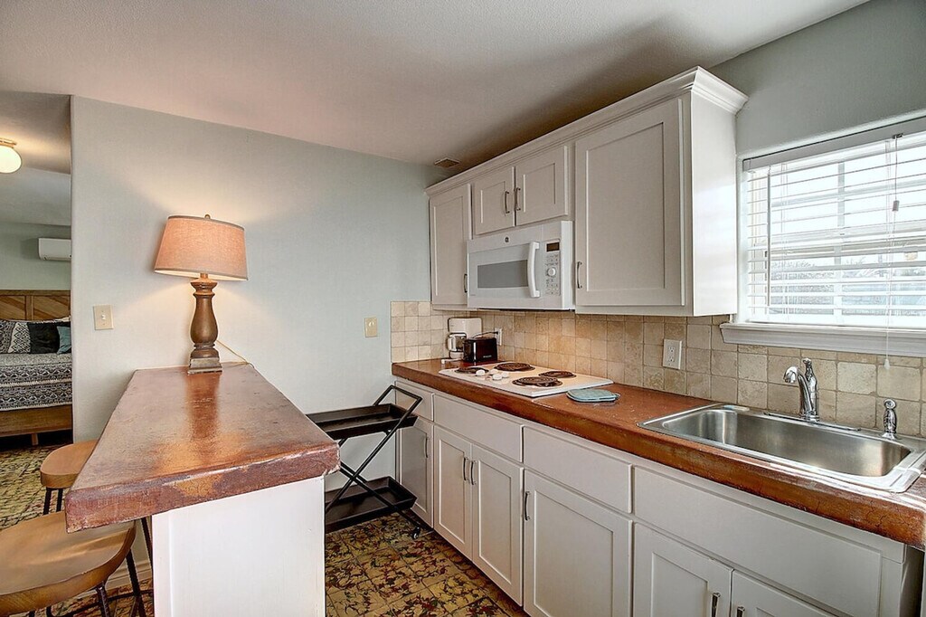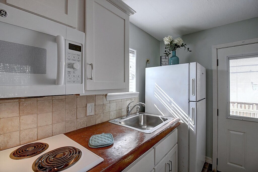 The advertised rate of $2,219/month is the lowest available price, based on a 1 month(s) stay with a move-in date of April 8, 2026. Rates vary depending on the duration of stay, season, and other parameters. For exact pricing and additional pricing components, please visit our website and enter your desired move-in and move-out dates. The rate is applicable when billed upfront; it can be higher if billed in multiple payments. Welcome to Siesta Villa, your intimate oasis in the heart of Port Aransas, Texas! Feel at home in this meticulously renovated 1-bedroom, 1-bath standalone cottage at Spanish Village, a perfect blend of old Port A charm and contemporary comfort. This beautifully renovated standalone cottage offers a king-size bed and an en-suite bathroom with a walk-in shower. The kitchen is fully stocked with dishes, utensils, cookware, and a coffee maker. A TV with cable is available in both the living room and bedroom. Up to 2 dogs are allowed for $125 per stay. Limited parking is available for 2 vehicles, and guests must place parking passes in vehicles. Explore nearby attractions such as Port Aransas Beach (5-minute drive), Leonabelle Turnbull Birding Center (7-minute drive), Roberts Point Park (8-minute drive), Mustang Island State Park (15-minute drive), and The Port Aransas Ferry (10-minute drive). Enjoy local dining at Irie’s Island Food, Virginia’s on the Bay, La Playa Mexican Grille, MacDaddy’s Family Kitchen, and Shell’s. Check-in is at 4 PM and check-out is at 10 AM. No cats are allowed. Smoking and/or vaping is not allowed inside or outside this property, and evidence of smoking will result in a $500 charge. No parties are allowed, and violations may result in immediate termination of the stay. No loud music or parties outside between 10 PM and 7 AM per city ordinance. Guests are responsible for damage to the property. Changes to reservation dates are only allowed 30 or more days prior to the arrival date. No changes are allowed once the guest is within 30 days prior to arrival. [SI]