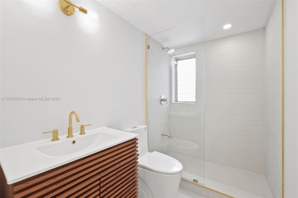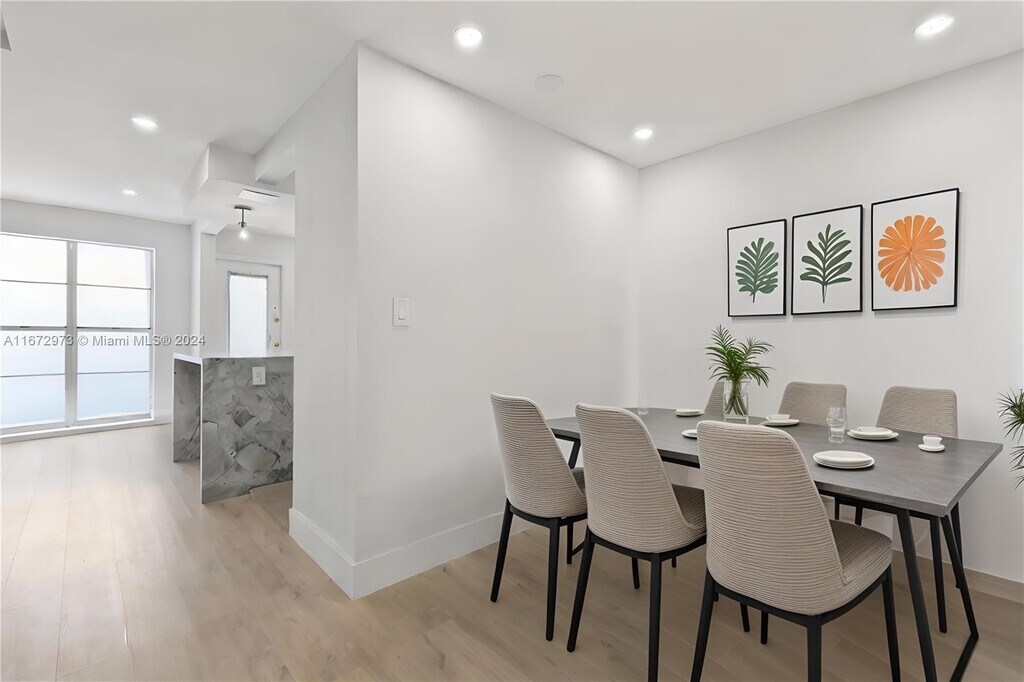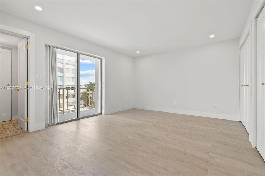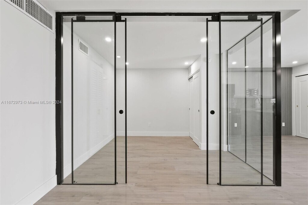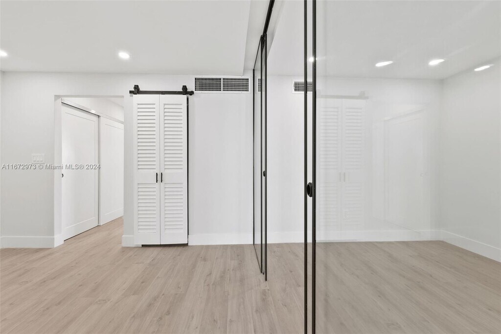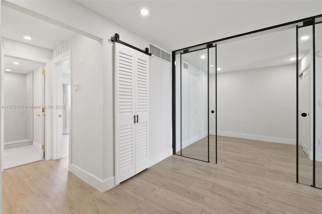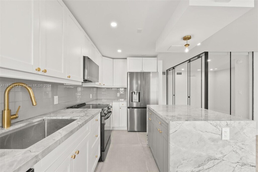 Brand new fully renovated 2 BD, 1.5 BA condo that combines contemporary design with functionality. The layout boasts abundant natural light from large south facing windows w/ light flooring throughout. Highlighting sleek finishes, the kitchen features quartz countertops with a center waterfall island, custom white cabinetry with brass hardware, and high-end LG stainless steel appliances. The living room is inviting with a convenient built-in TV mount, and adjacent to it is a flex bedroom enclosed with striking glass walls offering versatility—perfect for an office, studio, or guest space. The spacious primary offers large built out closets with a private balcony over looking Lincoln Rd. Be the first to live in this renovated property.