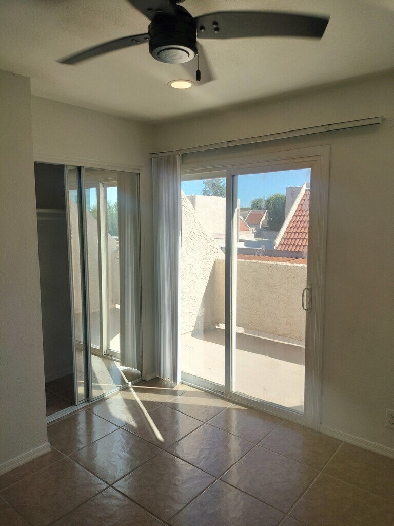 2 Bedroom 2 full bath townhome with loft and living room. Balcony, back patio and small enclosed yard. Refrigerator, oven, dishwasher, Washer and Dryer in unit, water, sewer, and trash paid in rent. Two allotted parking spots, one covered one uncovered. Lights and Ceiling fans in every room. No pets. No smoking. Close to loop 101, 202 and US 60. Available for viewing.