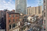 Beautifully renovated one bedroom, one bathroom offering sunset city views to the west at The Wellington on Rittenhouse Square! This residence features a spacious living room with oversized windows and an open modern kitchen with white cabinetry, stainless steel appliances, quartz countertop and subway tile backsplash. The bedroom enjoys two floor-to-ceiling windows and use of a full hall bathroom with single white vanity and tub shower. There are laminate wood" floors throughout. The Wellington is a pre-war apartment building located on Rittenhouse Square offering a 24 hour doorman, on-site management, and access to a nearby fitness center at 1845 Walnut."