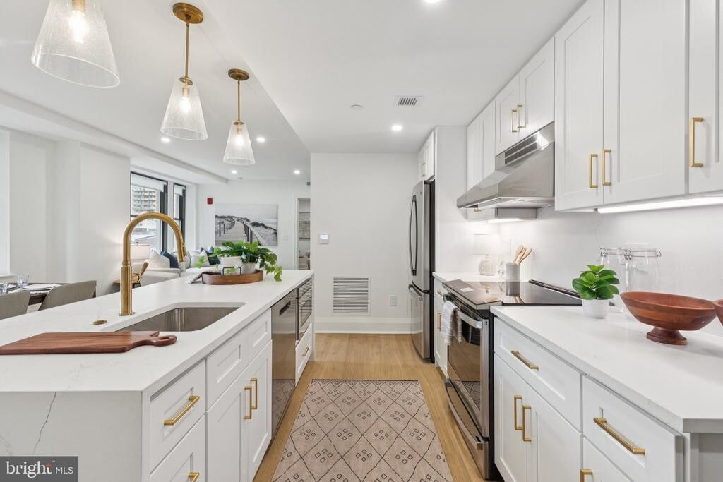 Brand new two bedroom, two bathroom with a split floorplan and high-end, modern finishes at The Wellington on Rittenhouse Square! This new construction home features an open great room with oversized windows and ample space for living and dining; a contemporary kitchen with white shaker cabinetry, quartz countertops and backsplash, and GE stainless steel appliances; a spacious primary suite with oversized windows, large wall closet, and an ensuite bathroom appointed in calacatta tilework with a modern white vanity and glass-enclosed shower; a generously sized second bedroom with excellent closet space; contemporary full hall bathroom with sleek vanity, glass-enclosed shower, and calacatta tilework; stacked LG washer/dryer; and recessed lighting and vinyl floors throughout. This home also enjoys individual heat & air conditioning controls. The Wellington is a pre-war apartment building located on Rittenhouse Square offering a 24 hour doorman, on-site management, and access to a nearby fitness center at 1845 Walnut. Tenants are responsible for paying all utilities.