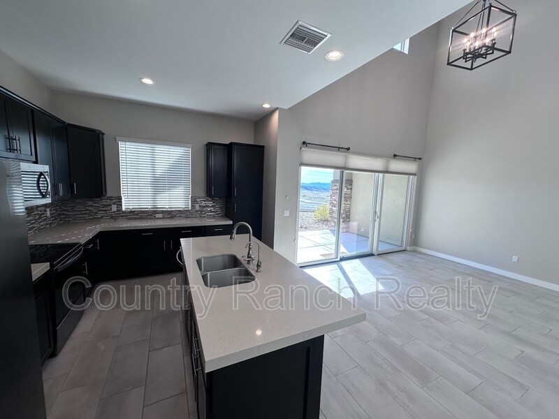 Welcome to this beautifully maintained 3-bedroom, 3-bathroom home located at 1350 River Boat, Bullhead City, AZ 86429. Built in 2019, this contemporary residence offers 2,043 sq ft of well-designed living space with quality finishes throughout. The open-concept main living area features high ceilings, abundant natural light, and large tile flooring, creating a bright and airy feel. The modern kitchen is equipped with dark cabinetry, quartz countertops, stainless steel appliances, and a spacious island—perfect for everyday living and entertaining. All bedrooms are generously sized, with bathrooms finished in sleek, modern tile and fixtures. The primary suite offers a spa-like feel with a large walk-in shower and dual-sink vanity. Additional features include a 2-car garage, ample storage, and thoughtfully designed indoor-outdoor flow. Located in a desirable river-area community, this home combines low-maintenance living with modern comfort—ideal for full-time residents or those seeking a lock-and-leave lifestyle.