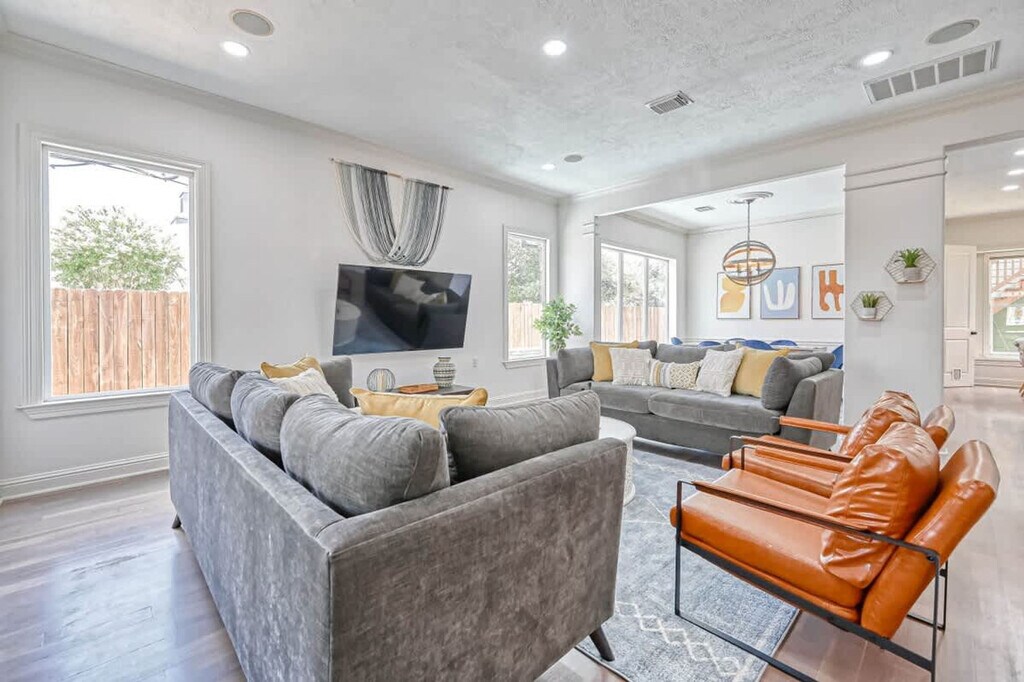 The advertised rate of $8,526/month is the lowest available price, based on a 1 month(s) stay with a move-in date of September 11, 2026. Rates vary depending on the duration of stay, season, and other parameters. For exact pricing and additional pricing components, please visit our website and enter your desired move-in and move-out dates. The rate is applicable when billed upfront; it can be higher if billed in multiple payments. Welcome to The Heights! Feel at home in this charming home, the perfect place to unwind, whether you’re here for a quick weekend getaway or a longer stay. This property features a private, fully equipped room for up to 2 people, complete with a living room, kitchen, bathroom, and laundry area for extra convenience and privacy. The home has 4 bedrooms, each equipped with comfortable beds, luxurious linens, flat-screen TVs, and en suite bathrooms stocked with all your toiletry needs. Relax in the private backyard with a tranquil pool, lounge chairs, and an outdoor dining area with a charcoal grill—perfect for making lasting memories with friends and family. All the smart TVs have many streaming apps like Netflix, Amazon Prime, and Disney+ pre-installed so you can start enjoying them right away. Up to 2 cars can be parked in the street directly in front of the home. House-trained pets are allowed with a fee of $100 USD per pet per stay. This vibrant Heights neighborhood in Houston offers easy access to trendy dining, shops, and entertainment. With tree-lined streets and a mix of historic charm and modern living, it’s a perfect spot for both relaxation and exploration. Close to Washington Avenue and Memorial Park, the area is ideal for guests looking to enjoy a lively atmosphere while being just minutes from downtown Houston. This lovely home is located in this safe and quite neighborhood. Nearby attractions include Memorial Park Municipal Golf Course, Buffalo Bayou Park, Bayou Bend Collection and Gardens, Memorial Park, Eleanor Tinsley Park, Downtown Aquarium, Houston City Hall, Houston Police Department Museum, Discovery Green, Minute Maid Park, Toyota Center and George R. Brown Convention Center. No parties or large gatherings are allowed. Smoking is not allowed inside the property and there is a $750 fine for violation. An additional nightly rate will be applied for more than 6 guests. The pool and kiddie pool are professionally serviced twice a week during the summer months and once a week during the rest of the year. The usage of the pool is under the renters own risk and responsibility. There are 2 cameras installed in the front door facing the front yard and in front of the garage facing the cars, this will be recording 24/7 for security purposes not inside the house to keep your privacy. This home has a garden/pool area and you may see wildlife in the yard and the occasional outdoor insect making an indoor appearance. Check-in time is from 4:00 p.m. onwards and check-out time is at 10 a.m. max. Registration Number: STR-2025-000464 [SI]