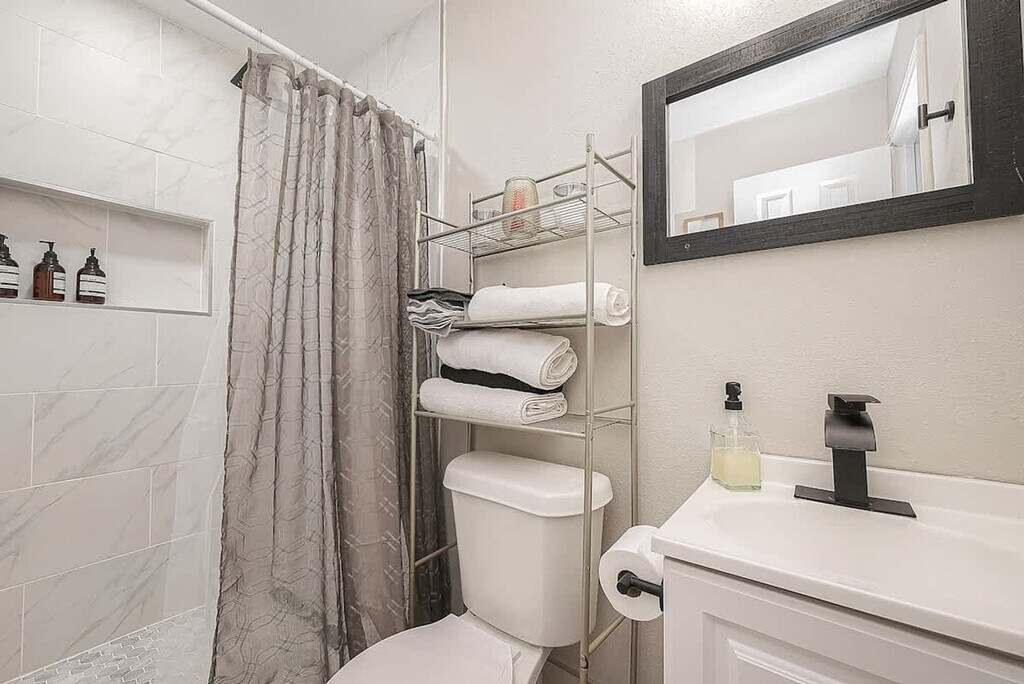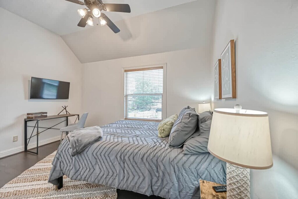 The advertised rate of $2,606/month is the lowest available price, based on a 30 day(s) stay with a move-in date of August 16, 2026. Rates vary depending on the duration of stay, season, and other parameters. For exact pricing and additional pricing components, please visit our website and enter your desired move-in and move-out dates. The rate is applicable when billed upfront; it can be higher if billed in multiple payments. Experience peace and comfort and feel at home in this centrally located guest apartment in Houston. Enjoy all the conveniences of home, including a fully equipped kitchen and a private laundry area. This apartment offers a bedroom and bathroom in separate rooms. Houston is a vibrant city brimming with culture, history, and charm. Known for its diverse culinary scene, it offers flavors from around the world alongside its famous Texan barbecue. The Museum District boasts world-class art, science, and history exhibits, while Hermann Park and the Bayou Greenways provide beautiful spaces to explore nature. With its lively theater district, buzzing sports events, and eclectic shopping spots, Houston offers something for everyone to enjoy. Quiet hours are between 10 PM and 9 AM. For security, there are two cameras: one at the front door overlooking the yard, and another in front of the garage facing the cars. These cameras record 24/7. There are no cameras inside the home. [SI]