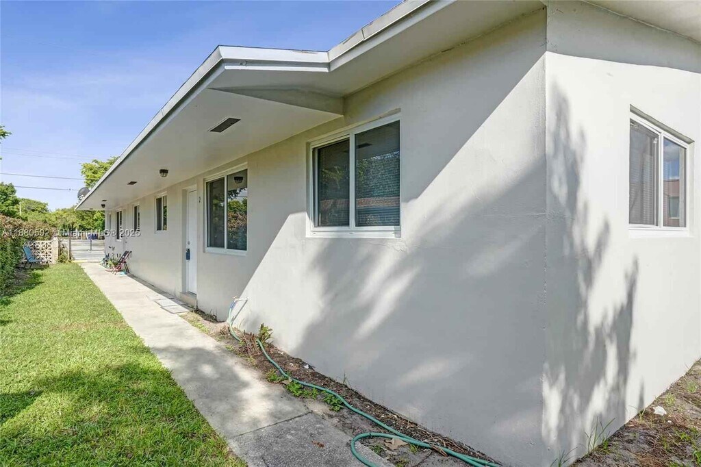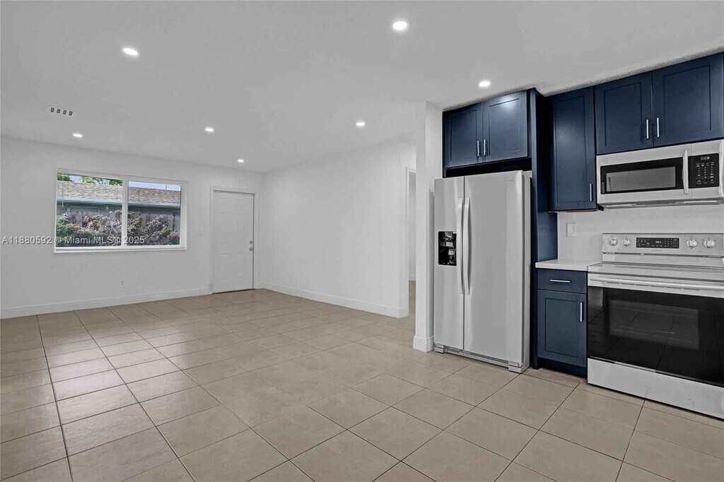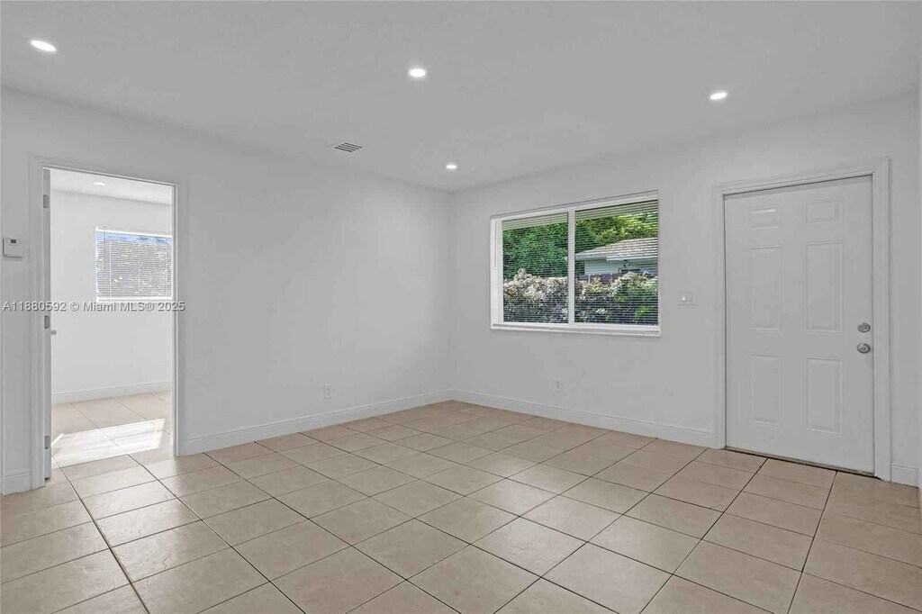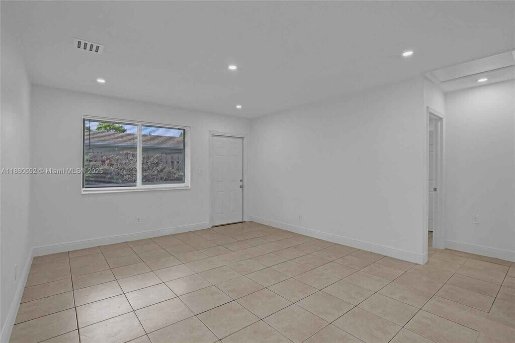 Living space is open and bright. Large hurricane impact windows with lots of natural sunlight. Features modern kitchen with quartz counter top and backsplash, dishwasher, microwave hood, tile throughout, washer and dryer in the unit, 100% LED lighting, efficient central AC. Fully renovated as of Sep 15, 2025, be the first to enjoy it. Planned improvements to enhance the landscaping/grounds/driveway.