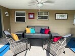 Beautifully remodeled single family home on a canal in Sea Ranch. Kitchen has ample cabinets, quartz countertops with peninsula. Living room with room for sofa & loveseat and large screen TV. 3 bedrooms including one with a 1/2 bath, one with room for a TV & sitting area. Screened-in lanai porch. Backyard area. Garage for storage or parking. Tenant must mow the lawn & weed, mower provided. Application with credit report required, minimum credit score of 650 is required.