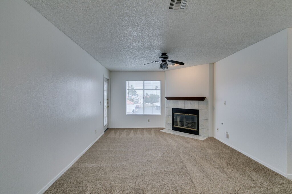 Terrific second-floor, single-story condo offering two bedrooms and two full bathrooms in a well-designed layout. The kitchen features a convenient breakfast bar, included refrigerator, and a separate dining area ideal for everyday living or entertaining. The spacious living room is highlighted by a cozy fireplace, creating a comfortable gathering space. The primary bedroom includes a private balcony and walk-in closet, along with an en-suite bathroom featuring dual sinks and a shower/tub combination. One covered carport space with assigned parking is included, completing this inviting and functional home. DEPOSITS: $1295* - Security Deposit (Refundable) - deposit is based on a scorecard basis & is determined by your credit, residential history, income, etc. $300 - Cleaning Deposit (Refundable) $350 - Pet Deposit (Refundable) **Deposit amount can vary with owner** ONE TIME MOVE IN FEE: $300 - Admin Fee (non-refundable) TOTAL MONTHLY CHARGES: $1,389.00 (Base Rent $1295, Trash $20, Sewer $29, Resident Benefit Package $45) Tenant is responsible for all additional utilities placed under their name. NO SMOKING ALLOWED Tenant required to maintain Liability Insurance throughout lease term.