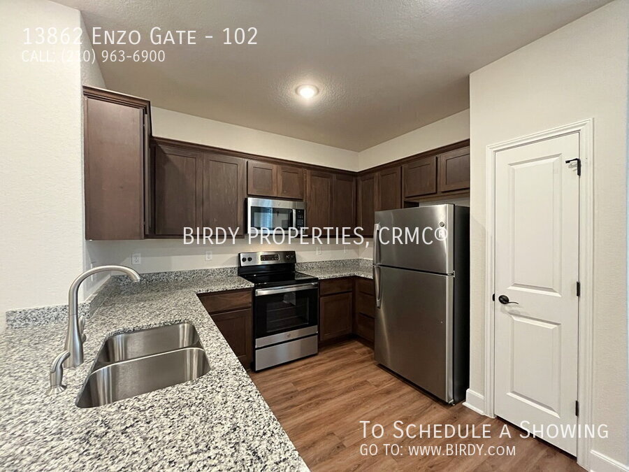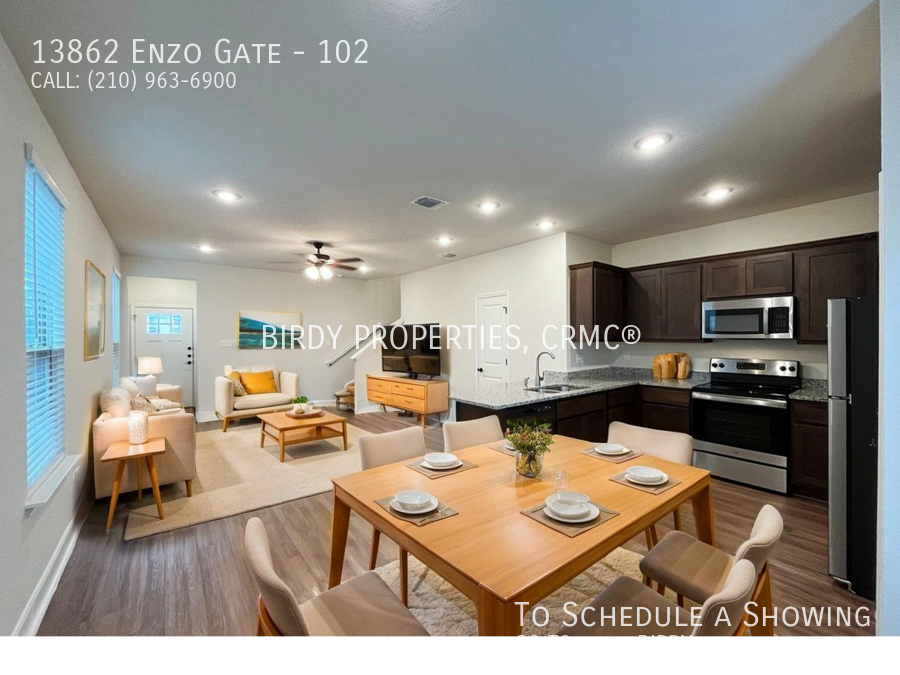 Welcome to this well-appointed 3-bedroom, 2.5-bath home located in a gated community with convenient access to shopping and local amenities. Designed with comfort and functionality in mind, the home features an open floor plan with a spacious living room, carpet and vinyl flooring, and all bedrooms situated upstairs. High ceilings on the second floor create a bright, open feel throughout the space. The kitchen offers solid countertops, a breakfast bar, pantry, and a full appliance package including a refrigerator, electric stove, microwave, and dishwasher, perfect for everyday living and entertaining. Additional highlights include an HVAC system with a programmable thermostat and plumbing in place for a water softener. Upstairs, the primary bedroom includes an ensuite bath with a walk-in closet, single vanity, and a tub/shower combination. A convenient upstairs laundry closet provides washer and dryer hookups. Enjoy outdoor living in the fenced backyard with a covered patio, ideal for relaxing or hosting guests. The home also includes a one-car garage with door opener. Community amenities include controlled access, barbecue and picnic areas, a playground and a welcoming neighborhood atmosphere. This home offers a great blend of comfort, convenience, and location. "*Our award winning Resident Benefits Package (RBP) required program includes Liability Insurance, Pest Control, Monthly Air Filter Delivery, Move-in Concierge (utilities/cable/internet), Credit Building, Resident Rewards, Identity Fraud Protection and more for only $65/mo. *If you provide your own insurance policy, the RBP cost will be reduced. Optional Premium Upgrades Available as well, More details in application. *PET APPS $30 with credit card/debit payment per profile or $25 by ACH per profile. High-Speed Internet Connectivity Made Simple: This property Now includes Group Rate 1Gig Internet (GRI) for just $69.50 per month - providing fast, reliable service at a low flat rate. With GRI, residents enjoy: 1 Gig high-speed internet No data caps All required equipment included Ongoing technical support. Premium amenity for your home, providing seamless connectivity. no surprise equipment fees, and no long-term contracts to manage. All information in this marketing material is deemed reliable but is not guaranteed. Prospective tenants are advised to independently verify all information, including property features, availability, and lease terms, to their satisfaction. *some marketing photos may be virtually staged images*