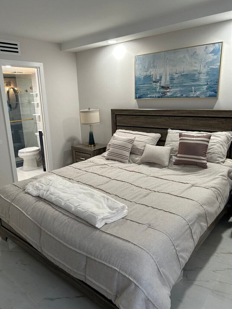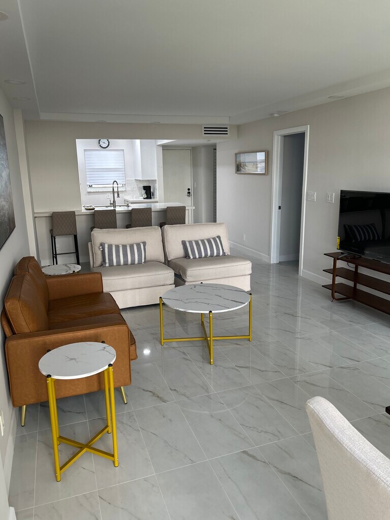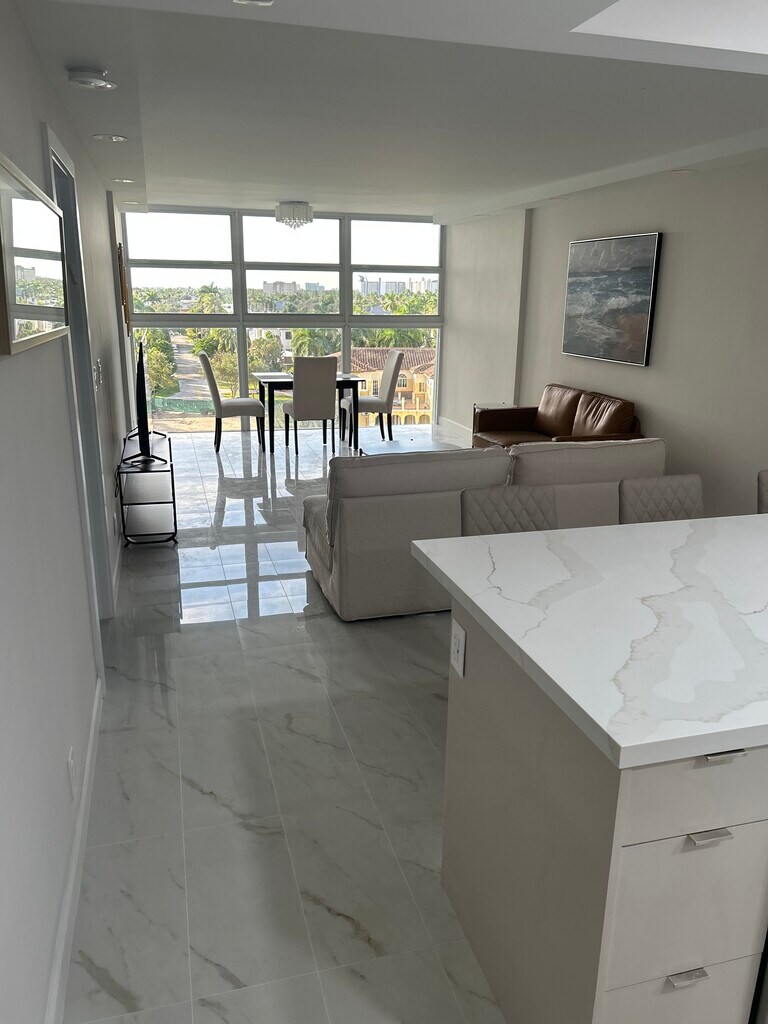 Seasonal Rental – 1BR / 1.5BA Condo in Delphi Towers, Pompano Beach (1391 S. OCEAN BLVD. APT. 605, POMPANO BEACH, FL 33062) Available for seasonal lease (3-4 months), this beautifully renovated and never-before-occupied 1-bedroom, 1.5-bath condo in the desirable Delphi Towers offers a perfect tropical getaway, and great 6th floor views. Ideally situated across the street from the ocean and overlooking the peaceful Spanish River Canal, the condo combines modern comfort with coastal charm. The Features: East–West exposure to enjoy natural light all day and spectacular sunsets over the Intracoastal. Custom-built kitchen, featuring a 4-stool island and brand-new appliances, opening into a bright living area. Exquisite porcelain flooring and delightful designer lighting. Central air. Assigned parking space for convenience. Laundry machines on each floor. The Tenants: Looking for a caring couple or individual, who will commit to treat this new unit as their own. Sorry, no pets. Community Amenities: Recently remodeled pool area with a clubhouse and sauna, along with private beach access, just steps away across the street at the exclusive El Mar Beach Club, which provides gated parking, a covered pavilion, BBQ grills, and picnic tables. Perfect Location: Perfectly located between the vibrant new developments of Pompano Beach and the charming community of Lauderdale-by-the-Sea, this condo is close to fine dining, boutique shopping, and entertainment.