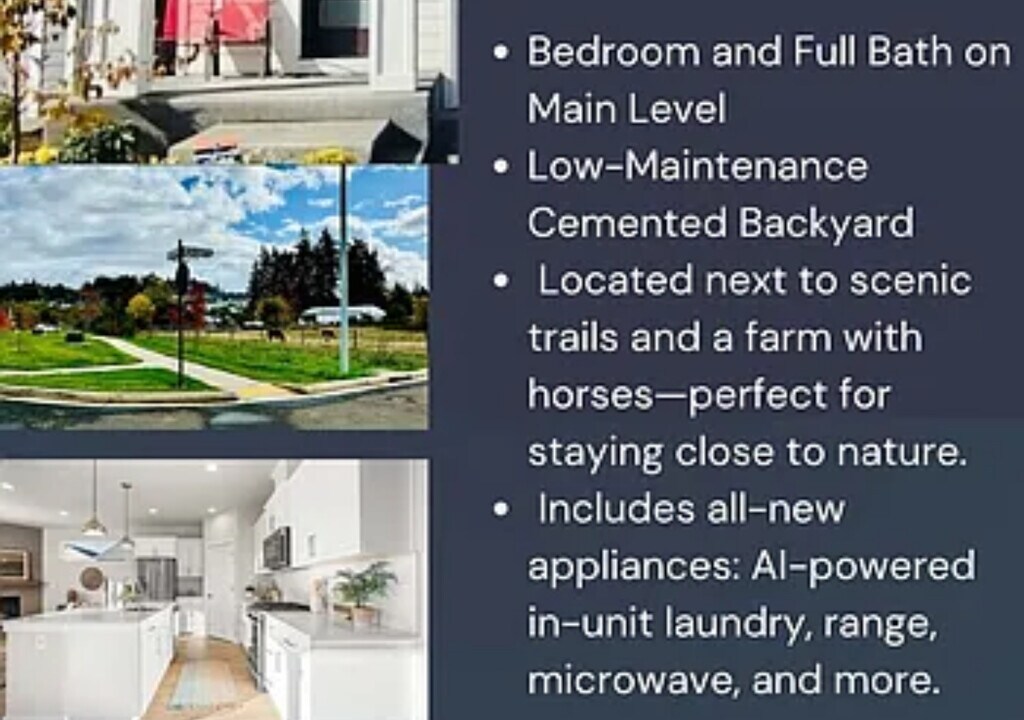 Modern Farmhouse Near Progress Ridge ??Highlights 5 Bedrooms | 3 Full Baths including main-level bedroom + bath Top-rated Sherwood School District Chef's kitchen quartz counters, gas range, stainless appliances, walk-in pantry Open great room high ceilings & gas fireplace Convenient in unit laundry area Fully fenced backyard with covered patio and low maintenance backyard Tesla/EV fast-charging port (NEMA 14-50) installed in garage 2-car attached garage, built 2024, energy-efficient & solar-ready HOA-maintained front yard, low-maintenance living ?? About This Home Built in 2024, this nearly new 2,466 sq ft modern farmhouse blends contemporary design with everyday comfort. The open-concept great room features high ceilings, large windows, and a cozy gas fireplace. The chef's kitchen includes quartz countertops, a spacious island, stainless steel appliances, a gas range, and a walk-in pantry perfect for entertaining and family gatherings. A main-level bedroom with full bath offers flexibility for guests, multigenerational living, or a home office. Upstairs, enjoy a loft and a luxurious primary suite with soaking tub, tiled shower, dual vanities, and walk-in closet. The fully fenced backyard with a covered patio is ideal for year-round outdoor living. A Tesla/EV fast-charging port (NEMA 14-50), solar-ready design, and HOA-maintained front yard add convenience and efficiency. ? Why You'll Love It This home checks every box modern style, smart layout, and a prime Sherwood location. You'll love being just minutes from Progress Ridge's restaurants, shopping, and entertainment, while enjoying the tranquility of Scholls Meadow. With top-rated schools, energy savings, and flexible living spaces, this home makes daily life easy and beautifully connected to the best of the community.