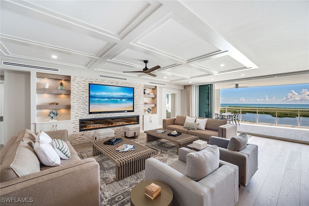BRAND NEW resort - style living at its finest! The views from this 12th floor,3 bedroom + den/ 4 bath condominium coastal retreat will ASTOUND you! With over 3,000 sf of high-end appointments and decorator touches,you will quickly find yourself melting into the comfortable lifestyle that this classic,costal condo and Kalea Bay exude. Your private elevator opens directly to the great room which offers many opportunities for both relaxing and entertaining. Indulge guests in the formal dining area,at the kitchen bar,or on the 500+ sf lanai where the view will steal the show. The large butler's pantry provides ample space for catering if you choose,but the cooktop is natural gas if you decide to play chef. Or,if you're looking for a relaxing evening,simply gather around the electric fireplace nestled on one of the cozy couches for TV time and/or conversation or pull up a chair and put up your feet on the lanai to watch the sun set. In the back of the condo,overnight guests will enjoy 1 of 2 Guest Suites with city views while the Primary Bedroom faces west to enjoy outstanding sunsets. The primary bath is spa-like with his and hers vanities,a beautiful soaking tub,an over-sized walk-in shower and a separate water closet with a bidet feature. The walk-in closet is a room in itself:) Building amenities are just an elevator ride to the 22nd floor Sky Deck where you'll find a rooftop pool with sun shelves,a large pool deck with lounge chairs for sunning as well as shady areas,an open-air Fitness Center,a Grill Area,and a Sky Lounge for entertaining and community events - all with a panoramic view of the Gulf of Mexico as a backdrop. It's stunning! If you want to kick it up a notch,you can simply walk across the street to Kalea Bay's lakefront Community Center boasting an even larger fitness/wellness center,3 more pools including a kid's wading pool and an adult-only pool,fire pits,an active tennis center offering clinics and lessons,pickleball courts,two open air bars and 2 full-service restaurants. There's even a beauty salon! What about the beach you say? The Kalea Bay shuttle will pick you up and take you to Vanderbilt Beach - just a few miles away. You really can have it all!