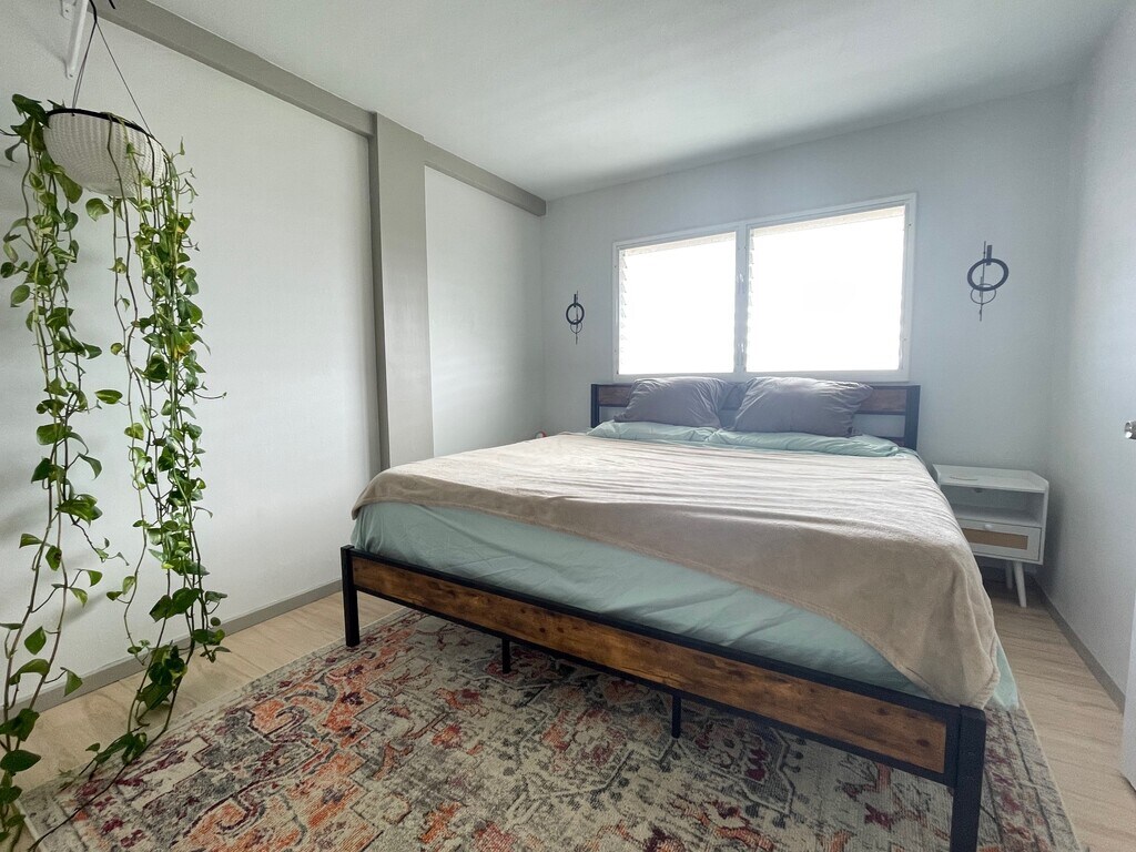 Meridian East is one of two high-rises in Kailua. This beautifully remodeled, fully furnished unit has an amazing breeze and distant ocean view. Kitchen has granite countertops, stainless-steel appliances and houses a full-size washer & dryer. Living room has reclining sofa with plugs for your devices and private balcony to watch the sunrise. Primary bedroom with ensuite, accent wall, tropical artwork and open closet. The 2nd bedroom has added storage space, ceiling fan and mirrored closet doors. The 2nd bathroom was remodeled with its own separate shower. Large tile flooring throughout for easy cleaning and lots of windows for natural light. 1 garage parking stall included. Possible 2nd parking stall available for $250/month. 6-7 month rental term only! Available early-May. Property rented fully furnished. No smoking. No pets. Rental includes water, sewer and trash fees. 1 parking stall included #607 (covered). 2nd parking stall optional for $250/month. Offered for rent by Island Hale Property Management, LLC. License No. RB-22992