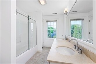 Welcome to this stunning 4-bedroom, 3.5-bath colonial nestled on a peaceful cul-de-sac in desirable Arlington. This luxurious home is filled with natural light streaming through floor-to-ceiling windows, open concept living spaces, and soaring ceilings that create an airy, expansive feel throughout. The modern kitchen includes a viking stove, granite countertops, and pantry storage. The spacious primary bedroom offers a spa like bathroom and generous walk-in closet. Three additional bedrooms provide ample room for family, guests, or home offices .Step outside to enjoy your private backyard oasis—perfect for relaxation, gardening, or outdoor entertaining. The convenient 2-car garage offers protected parking and storage. The lower level offers a flex space. Easy access to Rte 2, Harvard Square, Davis Square and downtown Boston.