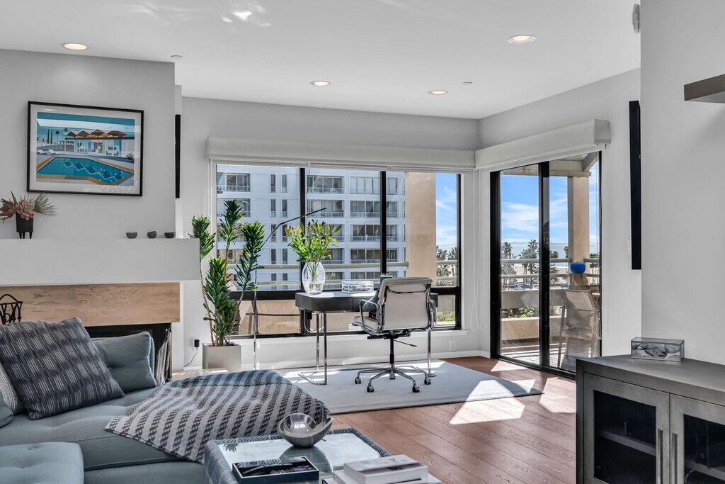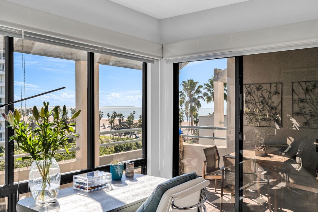 Once home to legendary composer Burt Bacharach, this exceptional two-bedroom plus den, two-bath residence blends history, style, and beachfront elegance. Step into this fully furnished, top-floor, designer-curated ocean view residence offering 1,569 square feet of refined beachfront living in the highly coveted Sea Colony III. Flooded with natural light from expansive windows and skylights, the open living and sitting areas capture beautiful ocean views and flow effortlessly to a large private balcony showcasing sweeping ocean and sunset vistas from the 6th floor. The space feels incredible, ideal for relaxing or entertaining. The primary suite is a tranquil retreat with ocean views, a custom walk-in closet, and a spa-inspired Victoria and Albert bath. A generously sized second bedroom is perfect for guests or a sophisticated home office, while a third bedroom or den provides additional flexibility for visitors or work-from-home living. Designer finishes throughout include top-tier stainless steel appliances and premium brands such as Miele cooktop, Gaggenau, and Miele oven and stove, as well as KitchenAid, Hansgrohe, Toto, Geberit, Mirabelle, Goodman HVAC, and Kenmore. The space also features Samsung and Sony large-screen televisions. Sea Colony III offers resort-style amenities, including 24-hour security, a heated pool, two spas, a fitness center, a yoga room, lush landscaped gardens, on-site storage, bike storage, and secure side-by-side parking with guest spaces. Just steps to the sand and moments from Main Street shops and dining, this is a rare opportunity to lease a true oceanfront sanctuary. A special offering not to be missed. MLS# 26639309