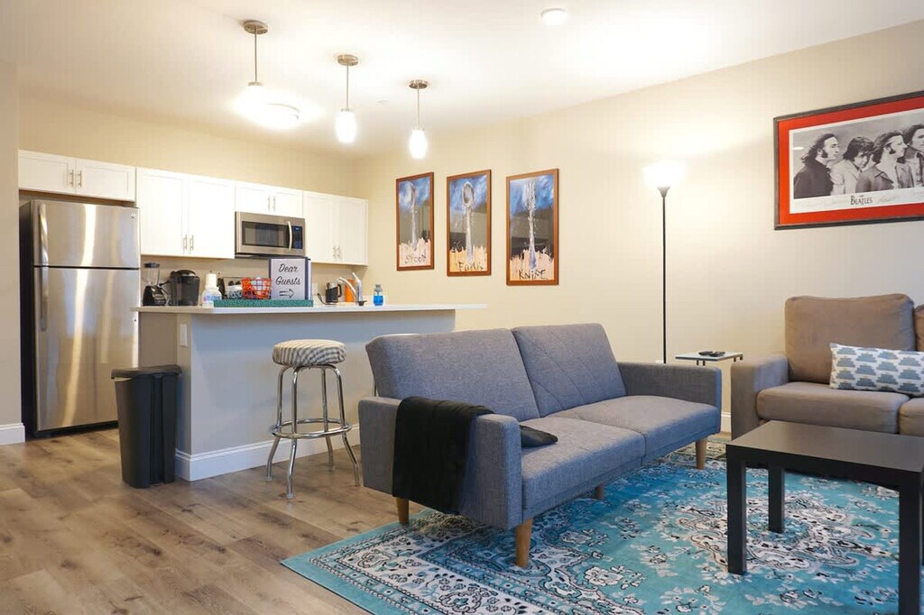 The advertised rate of $8,895/month is the lowest available price, based on a 1 month(s) stay with a move-in date of June 1, 2026. Rates vary depending on the duration of stay, season, and other parameters. For exact pricing and additional pricing components, please visit our website and enter your desired move-in and move-out dates. The rate is applicable when billed upfront; it can be higher if billed in multiple payments. Feel at home in this brand-new and luxurious 2-bedroom apartment, located on the second floor of a building with an elevator, just 10 minutes from Downtown Boston and a few minutes' drive from several hospitals. The building is handicap accessible. This fully furnished apartment features a fully stocked kitchen with new stainless steel appliances and quartz countertops, perfect for long-term stays. The open-concept living room offers fast and reliable internet, plenty of seating, a TV with Roku streaming, and a washer/dryer. Bedroom 1 includes a queen-size bed, a large window with lots of natural light, and ample storage space with a closet and dresser. Bedroom 2 (a den converted into a bedroom) contains a single bed and a queen-size pull-out couch, but it does not have a door. The bathroom features a shower and tub. Private garage parking is available in the basement of the building, subject to availability, for $25 per night, $100 per week, or $325 per month. Street parking is also available; you will need to register your car and apply for a street parking permit through the city. Weekly or monthly cleanings and blackout shades are available upon request for an extra cost. The apartment is pet-friendly, with a fee of $50 per month. Chelsea is centrally located within 10 minutes of many Boston hotspots, including the airport, the new casino, downtown, TD Garden, universities, hospitals, and historical tourist attractions. Many restaurants and cafes are within walking distance. Multiple bus stops are just seconds from the front door, and the commuter rail is 0.5 miles away, taking you directly to North Station. The nearest subway station, the Wood Land Blue Line stop, is about 1.7 miles away. Smoking is prohibited, and there will be a $500 charge for deep cleaning and odor removal if this rule is violated. Parties are also prohibited. Registration Number: ROC-17394724-003 - J Matthew Hauber [SI]