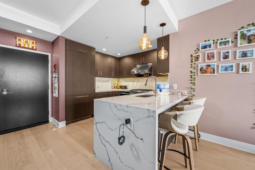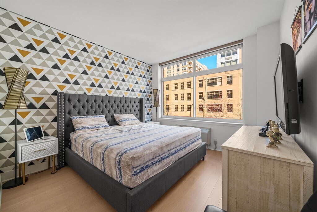 Beautiful east-facing 2-bedroom home in the luxury community of 1400 Hudson St. Chef's kitchen features white quartz counter tops, Thermador and Bosch SS appliances, and a breakfast bar. The living space has a large bay window and a designated dining area with room for a large dining table. The primary bedroom has a custom walk-in closet and spa-like ensuite bathroom. The second bedroom also has its own custom walk-in closet. Also included are Hunter Douglas blinds, hardwood floors, and in-unit washer/dryer. Building amenities include 24/7 concierge, yoga room, cardio gym, weight room, rooftop pool, resident lounge, billiards lounge, courtyard, several rooftops with firepits & BBQ grills, playroom, and shuttle to and from the Path train. Located near the ferry, bus to NYC, shops, restaurants, and everything uptown Hoboken has to offer. Move in 4/1/26.