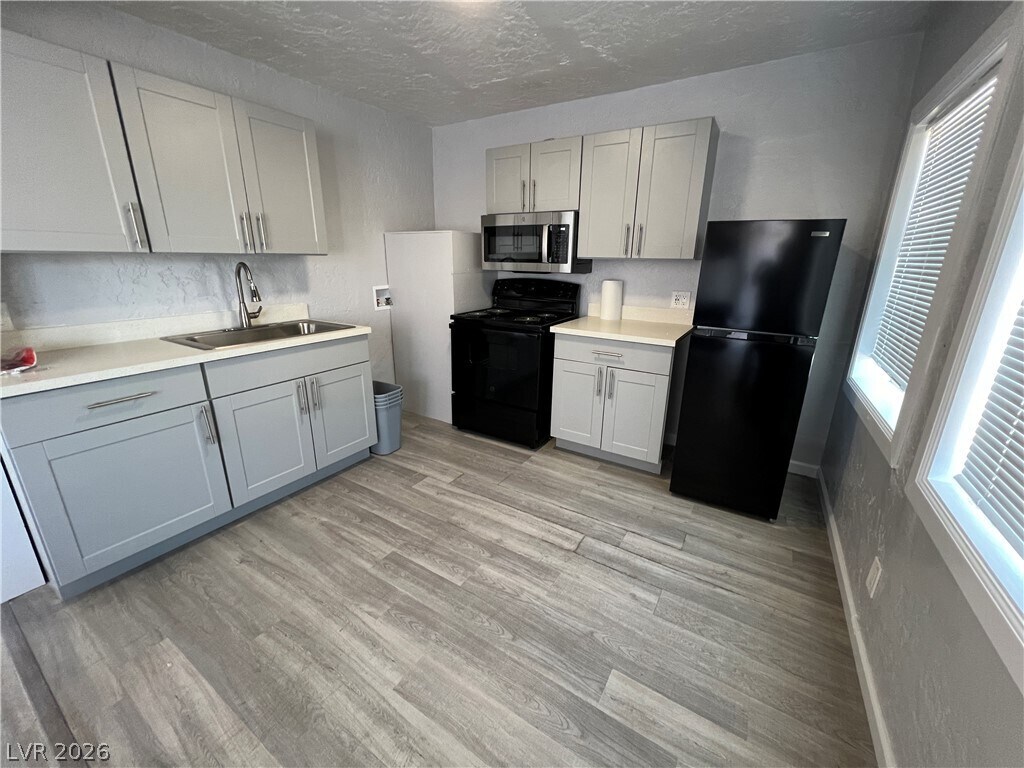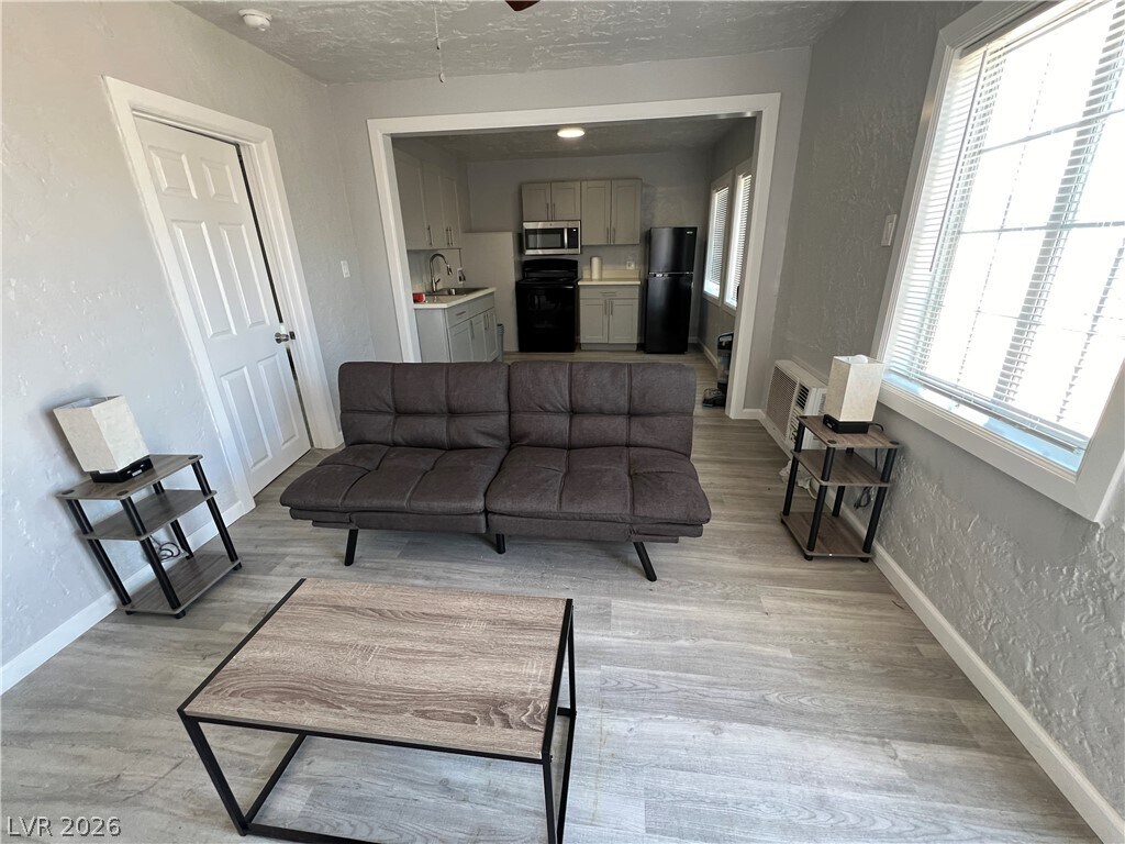 Furniture for staging. Welcome to your new home in the heart of Downtown Las Vegas, just steps away from the vibrant Arts District. This 1 bedroom, 1 bathroom apartment has been newly remodeled to offer a modern and comfortable living space. Enjoy the convenience of being close to all the action, with restaurants, galleries, and entertainment right at your doorstep. Make the most of city living in this stylish and centrally located apartment. Ring door bell and one off street parking space included in rent.