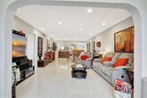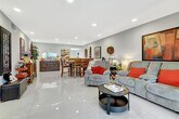 Pool view- remodeled Nandina Model—the largest 1 bed, 1.5 bath in Century Village, Pembroke Pines. This spacious unit features a modern kitchen with stainless steel appliances, upgraded cabinets, and quartz countertops. Both bathrooms are tastefully remodeled, with tile flooring throughout. Enjoy impact windows, a walk-in closet with custom bedroom storage, ceiling high lights, and an in-unit washer/dryer. The bedroom overlooks the patio with serene pool and garden views. Conveniently located near the back gate with ample guest parking. Water, basic cable, and internet included. The community offers extensive amenities including pools, tennis, clubhouse, theater, clubs, and activities. 650 minimum credit score. Association approval required.