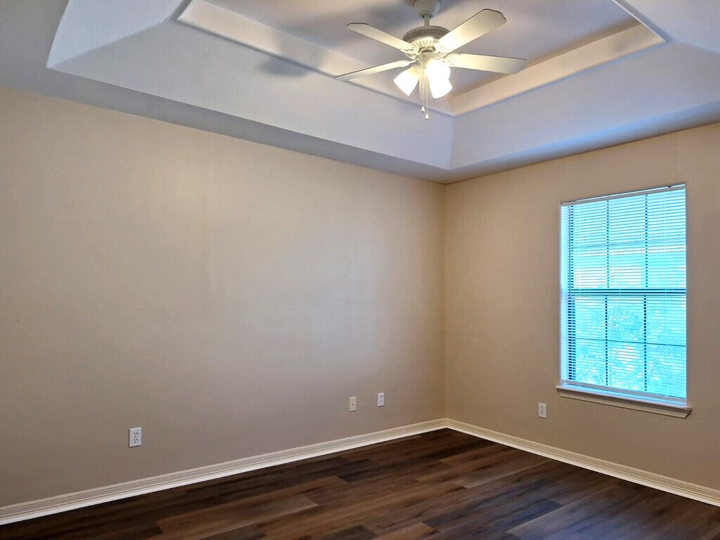 Located in a quiet gated neighborhood monitored with security cameras, Sugar Creek Subdivision is home to this beautiful apartment, which features two levels. The apartment is attractively designed with a large living room and kitchen on the first floor. This kitchen features a refrigerator, stove/range, and access to the laundry room with a half bath. An inviting fenced-in backyard with grass provides more space to enjoy. Two bedrooms are located on the second floor, each with an en suite full bathroom. Large closets throughout the apartment provide additional storage. A covered parking area is located at the front of the building. Do not lose this opportunity. Move in and enjoy it!