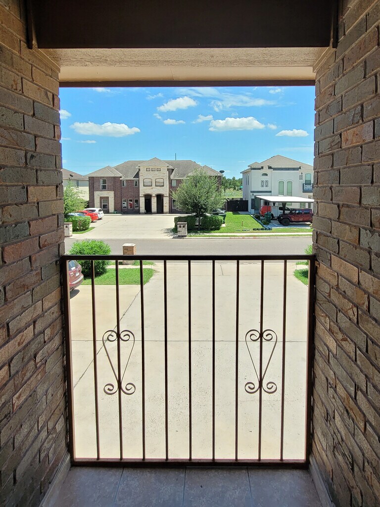 This beautiful two-story apartment is located in the Sugar Creek Subdivision, City of Pharr, a quiet gated neighborhood monitored with security cameras. The apartment is attractively designed with a large living room and kitchen on the first floor. The kitchen is fully equipped with a refrigerator, stove/range, microwave and has access to the laundry room with a half bath. An inviting fenced-in backyard provides more space to enjoy. The second floor has two bedrooms, one of them with a balcony and each one with a complete bathroom en suite. Large closets throughout the apartment provide additional storage.Two parking spaces are located at the front of the building.Do not lose this opportunity. This complex unit is located in Sugar Creek Subdivision, City of Pharr, a quiet, gated neighborhood with video surveillance.
