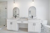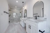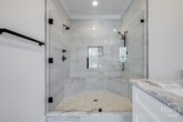 New Construction on Double Lot; modern & spacious living sits on a desirable double lot & features an open floorplan with high ceilings,offering an abundance of natural light & a sense of spaciousness throughout. The home boasts low-maintenance wood flooring,elegant quartz countertops,& upgraded moldings for a refined touch. The heart of the home is the kitchen,equipped with an eat-at island & generous walk-in pantry that provides ample storage space. Modern contemporary light fixtures enhance the home’s sleek design,while the owner’s suite offers a true retreat with a built-in walk-in closet & luxurious glass shower designed for two. With off-ground construction & spray foam insulation,this home is energy-efficient,ensuring comfort year-round. Enjoy outdoor living with both a covered front porch & covered back porch,perfect for relaxation and back yard has privacy fence.