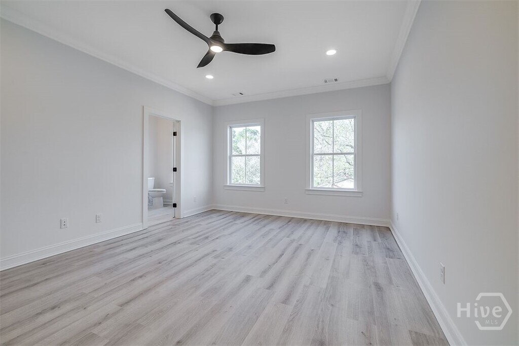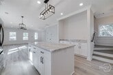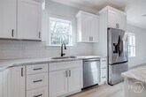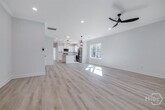 New Construction on Double Lot; modern & spacious living sits on a desirable double lot & features an open floorplan with high ceilings, offering an abundance of natural light & a sense of spaciousness throughout. The home boasts low-maintenance wood flooring, elegant quartz countertops, & upgraded moldings for a refined touch. The heart of the home is the kitchen, equipped with an eat-at island & generous walk-in pantry that provides ample storage space. Modern contemporary light fixtures enhance the home’s sleek design, while the owner’s suite offers a true retreat with a built-in walk-in closet & luxurious glass shower designed for two. With off-ground construction & spray foam insulation, this home is energy-efficient, ensuring comfort year-round. Enjoy outdoor living with both a covered front porch & covered back porch, perfect for relaxation and back yard has privacy fence.