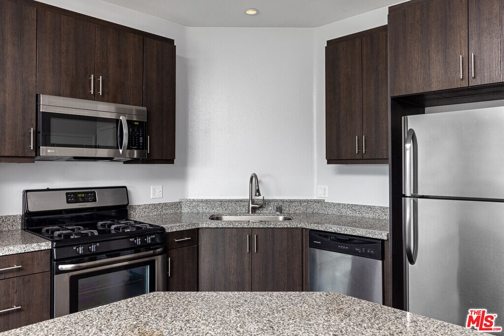 TOP FLOOR Updated1bed 1bath with lots of light in a newer secure building. Updated kitchen with stainless steel appliances, spacious living room with large outdoor patio with city views. Bedroom is well sized with a HUGE bathroom. Other features include in-unit full size washer & dryer, central AC, one assigned parking spot in gated garage, a Gym, a secure pet area on the property to walk your dog at night and an outdoor lounge with seating and dining tables. PET FRIENDLY. MLS# 25613735