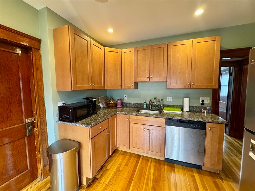 Updated 2nd-floor apartment in a prime Roslindale location! This spacious unit offers 2+ bedrooms, plus a bonus room perfect for a small bedroom or home office.The updated kitchen features stainless steel appliances, granite countertops, ample cabinet space and in-unit laundry. Large living room and dining room with original built-in hutch. Enjoy off-street parking, extra basement storage and a private shared yard. Relax on your private front and back porches, and take advantage of the convenient location—just minutes to commuter rail stops, Roslindale Square, the Longwood Medical Area, the Arboretum, and more.