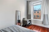 Brian CaluoriOpen and airy one-bedroom condo for rent in Arlington Court, an elevator building in the heart of the South End. Bright and spacious living room features a decorative fireplace, original crown molding and wainscoting, and two walk-in closets. The roomy kitchen includes updated appliances, a custom-built pantry, and an additional walk-in storage closet—providing ample storage. 11-foot ceilings throughout and hardwood floors in the living and bedroom. A common roof deck with panoramic skyline views completes this offering. Convenient to all the wonderful neighborhood restaurants and boutiques. Sorry, no pets or undergrad students. No laundry in building.