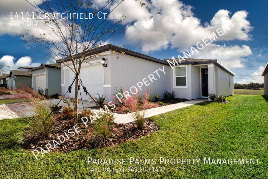 Step into this bright, easy-living 3 bedroom, 2 bath home with an open floorplan that’s made for everyday comfort and relaxed Florida living. Tile flooring runs through the main living areas, making cleanup a breeze, while plush carpet in the bedrooms keeps things cozy underfoot. The great room flows right into the kitchen, so you can cook, chat, and entertain all in one comfortable space. The kitchen features granite countertops, stainless steel appliances (range, microwave, dishwasher), and plenty of cabinet space—perfect whether you’re reheating takeout or cooking a full dinner. Just off the main living area, you’ll find a dedicated laundry room inside the home, so no more hauling laundry out to the garage. The primary bedroom offers a peaceful retreat with a walk-in closet and an en-suite bath. Two additional bedrooms give you options—guest room, home office, or kids’ rooms—while the second full bath is conveniently located for everyday use. Central electric heating and cooling keep the home comfortable year-round. Outside, enjoy a low-maintenance yard and a private patio—ideal for morning coffee or winding down in the evenings. An attached 2-car garage and driveway provide plenty of parking and storage. You’ll also have access to community amenities including a pool, fitness center, playground, basketball court, and pickleball courts, plus sidewalks and street lights for easy evening strolls. Zoned for Annie Lucy Williams Elementary, Buffalo Creek Middle, and Parrish Community High, this home sits in a community with deed restrictions that help keep everything looking well-maintained. If you’re looking for a clean, modern home with great amenities and a functional layout—not just a rental, but a comfortable place to land—this one should be on your list. Paradise Palms Property Management 8130 Lakewood Main St Ste 103 Lakewood Ranch, FL 34202