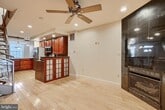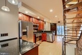 1413 Anchor Street delivers a stylish blend of comfort and modern design, highlighted by exposed brick, floating staircases, and rich wood floors that run throughout the home. The main level features an updated kitchen with granite counters, built‑in cabinetry, and stainless‑steel accents that make cooking and entertaining effortless. -------------------------------------------------------------------------------------------------------------------------------------With three spacious bedrooms and three full baths—including an en‑suite primary bath and a luxurious jacuzzi‑style soaking tub in the lower‑level bathroom—this home offers both everyday convenience and elevated relaxation. Ceiling fans throughout, along with an in‑unit washer and dryer, add to the home’s practical appeal. -------------------------------------------------------------------------------------------------------------------------------------- Outdoor living is equally impressive, with a rear patio, a deck off the main level, and a private deck off the primary bedroom that extends your living space into the open air. A rooftop wet bar and rooftop deck crown the home, providing sweeping views and the perfect setting for unwinding or hosting friends. Set on a quiet block yet minutes from Baltimore’s vibrant amenities, this property offers an ideal balance of neighborhood charm, modern upgrades, and city accessibility. ------------------------------------------------------------------------------------------------------------------------------------- Parking is available for rent in a neighboring lot through a third‑party vendor, typically ranging from $125–$150 per month.