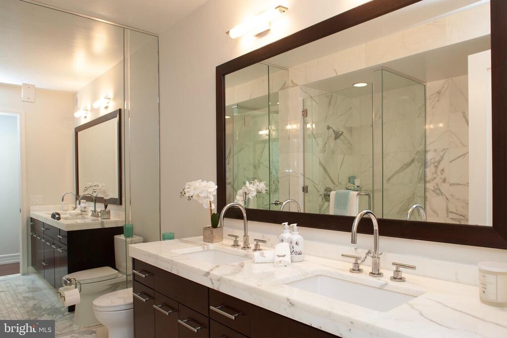 This thoughtfully, beautifully upgraded corner 2-bedroom 2 bath home on the 30th floor of The Ritz-Carlton Residences offers 10’ ceilings with floor-to-ceiling operable windows, flooding the home with natural light from both the east and west. Wood floors throughout. Automated shades, customized closets. Designer kitchen with Sefina Cumaru cabinetry, Viking gas cooking and convection microwave, Sub-Zero refrigerator, Miele dishwasher, Uline wine cooler, Dornbracht fixtures, stone countertops, Franke stainless steel under-mount sink, glass tile backsplash. The main bedroom has three customized closets and an ensuite luxurious bath with Calacatta marble floors, double vessel sinks, gorgeous Bain ultra-soaking tub, Duravit commode and a separate walk-in shower with frameless glass enclosure. The second bedroom is also perfect as a guest suite and/or office. Second bath features Crema Marfil marble floors and walk-in glass shower. Resident-only services and amenities include 24-hour concierge, 24-hour valet parking, porters, doorman, chauffeur service, 7000 sf state-of-the art fitness center overlooking City Hall and Dilworth Park, 54’ indoor lap pool, hot tub, locker rooms with shower and towels for the pool, yoga room, luxurious resident lounge to enjoy daily and/or to reserve for your private meeting or event, a theater/media room, outdoor terrace with gas grills, fire pits, sitting areas, water table, an on-site dog park, and a gated garden with a cascading waterfall.