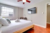 Experience the best of Alexandria from this stylish 2-bedroom apartment in the heart of the historic Old Town North district. With a 24-hour gym and business center, feel at home in this perfect base for exploring Alexandria and D.C. Step into a bright and modern 2-bedroom apartment, thoughtfully decorated to be your comfortable home away from home. Both bedrooms feature plush queen-size beds for a relaxing stay. The welcoming living area is a great space with a TV, perfect for unwinding after a day of exploring. The kitchen is fully equipped with modern appliances and all the essentials you need to prepare your favorite meals. Includes a clean full bathroom and a convenient half-bathroom for guests. Secure bike storage is available. This apartment is in Old Town North, a picturesque neighborhood offering a unique blend of history, culture, and modern convenience on the banks of the Potomac River. It's a walker's paradise, with the Old Town Waterfront and numerous parks, cafes, and restaurants just a short stroll away. You are right next to the iconic 18-mile Mount Vernon Trail, perfect for a scenic bike ride along the Potomac River. The Braddock Road Metro Station is just a few minutes away, offering quick and easy connections to the heart of D.C. For your convenience, a large and well-stocked Safeway with a pharmacy and Starbucks is located nearby. Enjoy an unbeatable location steps from the scenic Old Town Alexandria Waterfront and Mount Vernon Trail, a short stroll to the charming boutiques and galleries on King Street, and within walking distance of top-rated neighborhood spots. Loud music and parties are strictly prohibited and violations may result in fines from building management. Please park only in designated white spaces to avoid being towed, as yellow spaces are reserved. Smoking inside is charged a $300 fine, and a party on the property is charged a $300 fine. The building requires a brief guest screening prior to check-in, which must be completed before arrival. The building operates a centralized HVAC system in accordance with municipal regulations. Heating runs from October 13 to May 1, while air conditioning is available from May 15 to October 1. During seasonal transitions, HVAC adjustments are managed by the building association based on outdoor temperatures. Quiet hours are between 10 PM and 8 AM. All guests must be registered, and you must provide the full names and IDs of all guests who will be entering the property. [SI]